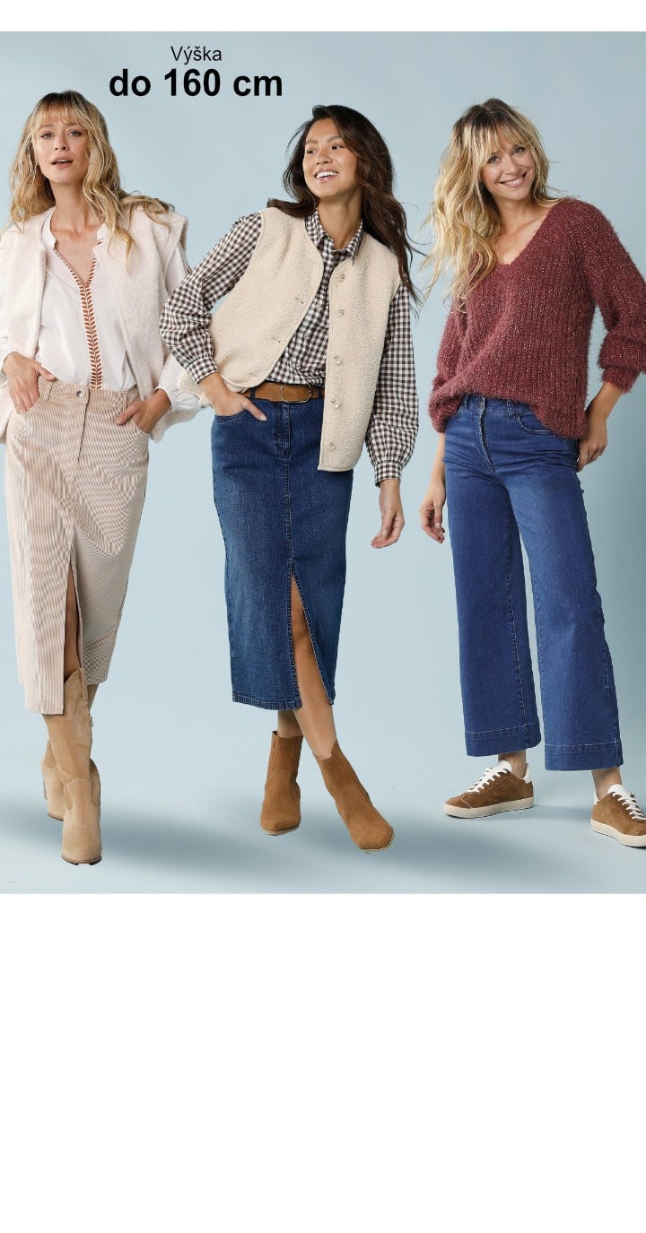 Výběr produktů přizpůsobený svým střihem ženám s výškou postavy mezi 150 a 160 cm. Užijte si módu Blancheporte bez kompromisů a nutných úprav.