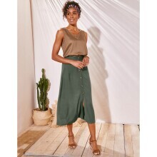 Jednobarevná splývavá midi sukně na knoflíky, eco-friendly viskóza