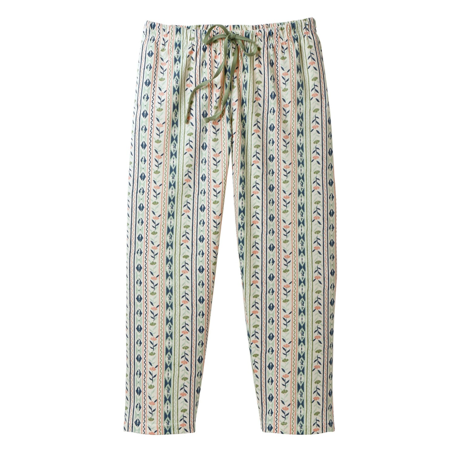 3/4 pyžamové kalhoty s potiskem květin oplývají svěžestí a barvami. Materiál příjemný na nošení. Snadná údržba. Potisk jarního vzoru. Rovný střih nohavic. Pružný pas. Jednobarevná šňůrka na zavázání. Standard 100 podle Oeko-Tex. Tato známka označuje textilní výrobky, které byly podrobeny laboratorním testům na široké spektrum škodlivých látek a výrobek je bezpečný nad rámec platných norem. Lze prát v pračce.