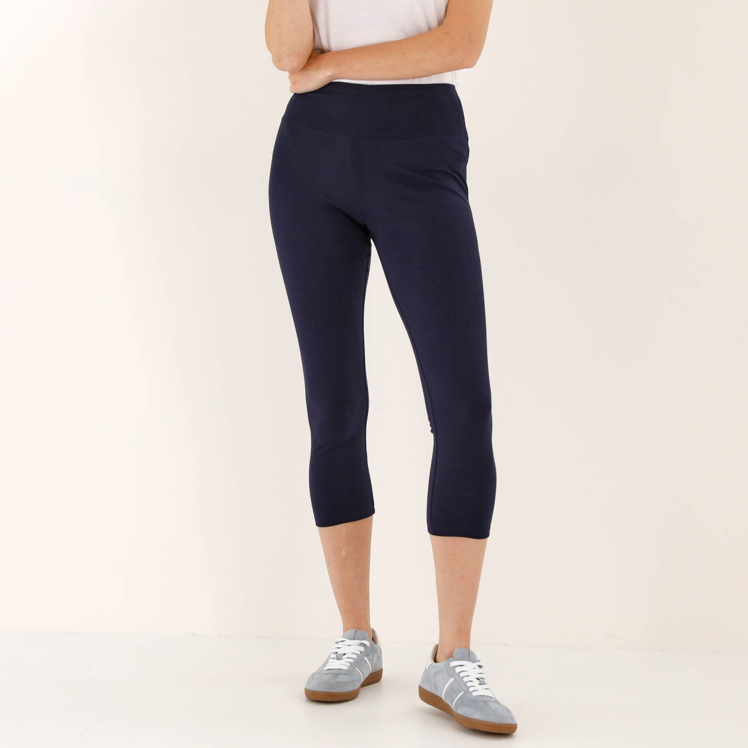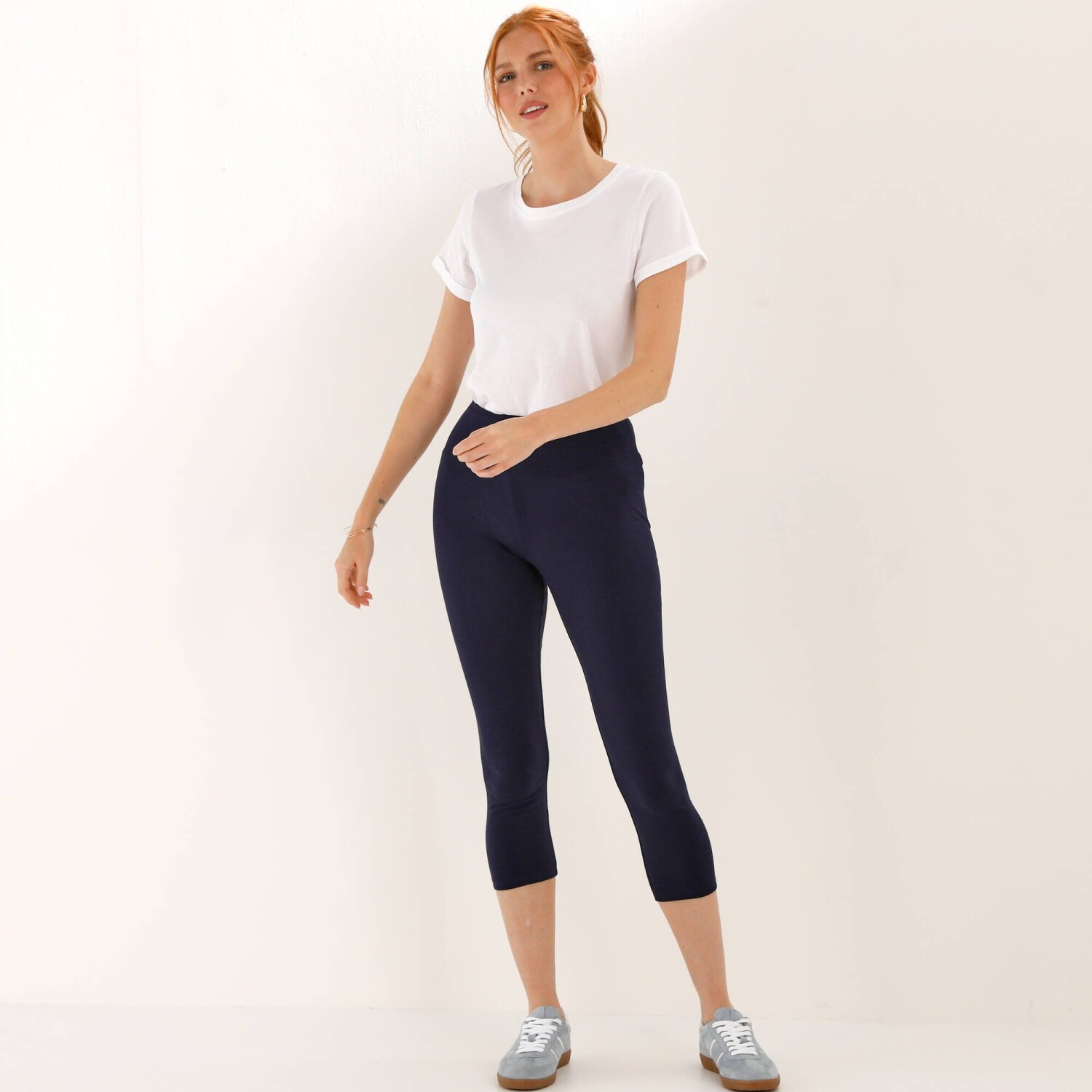 Tyto 7/8 legíny mají jedno malé plus: široký pas pro efekt plochého břicha. Vysoký pas. Dvojitý pas s vnitřní pruženkou a efektem plochého břicha. Strečový úplet pro volnost pohybu. Pružný komfortní žerzej. 7/8 délka. Standard 100 podle Oeko-Tex (CQ 1216 / 3 IFTH). Tato známka označuje textilní výrobky, které byly podrobeny laboratorním testům na široké spektrum škodlivých látek a výrobek je bezpečný nad rámec platných norem. Lze prát v pračce.