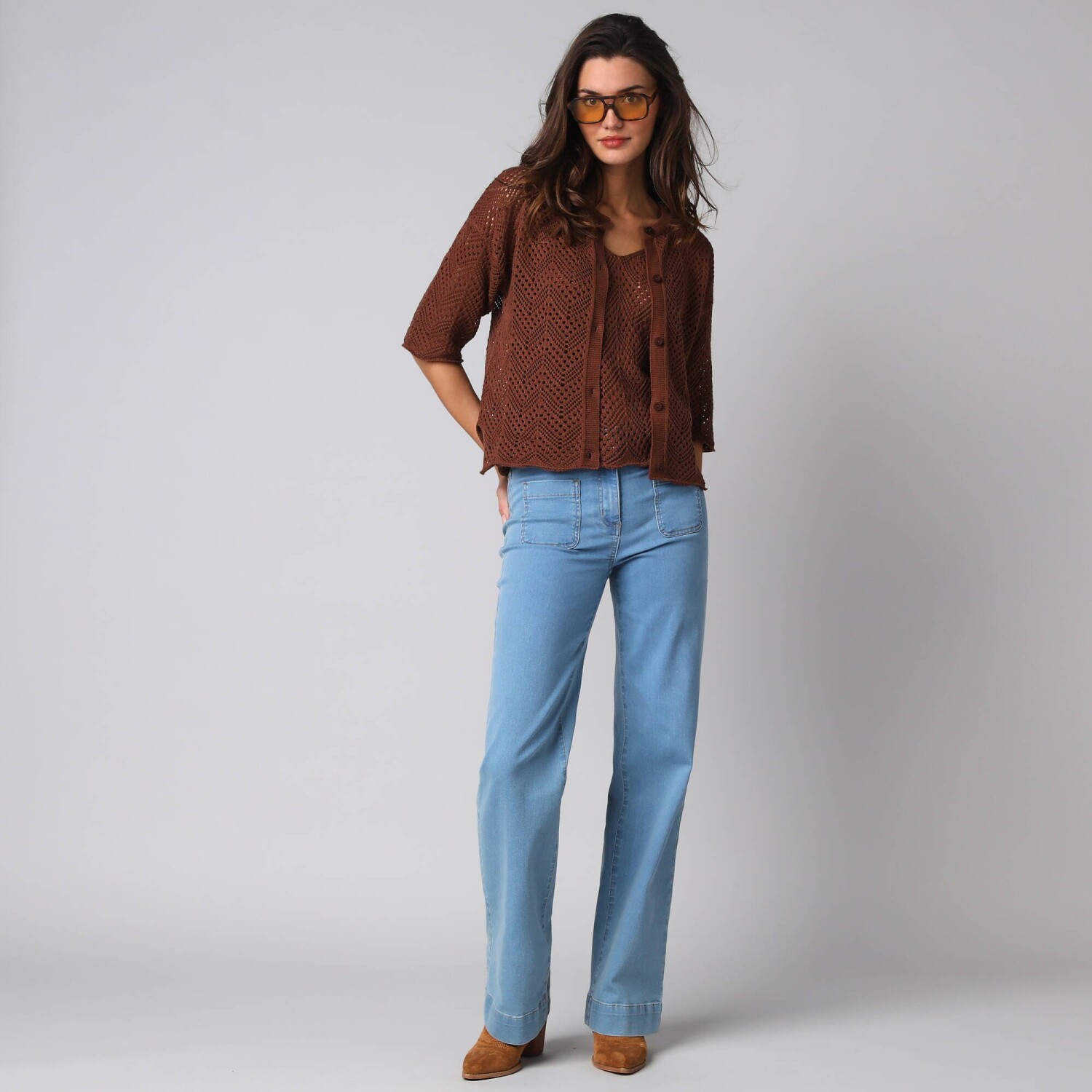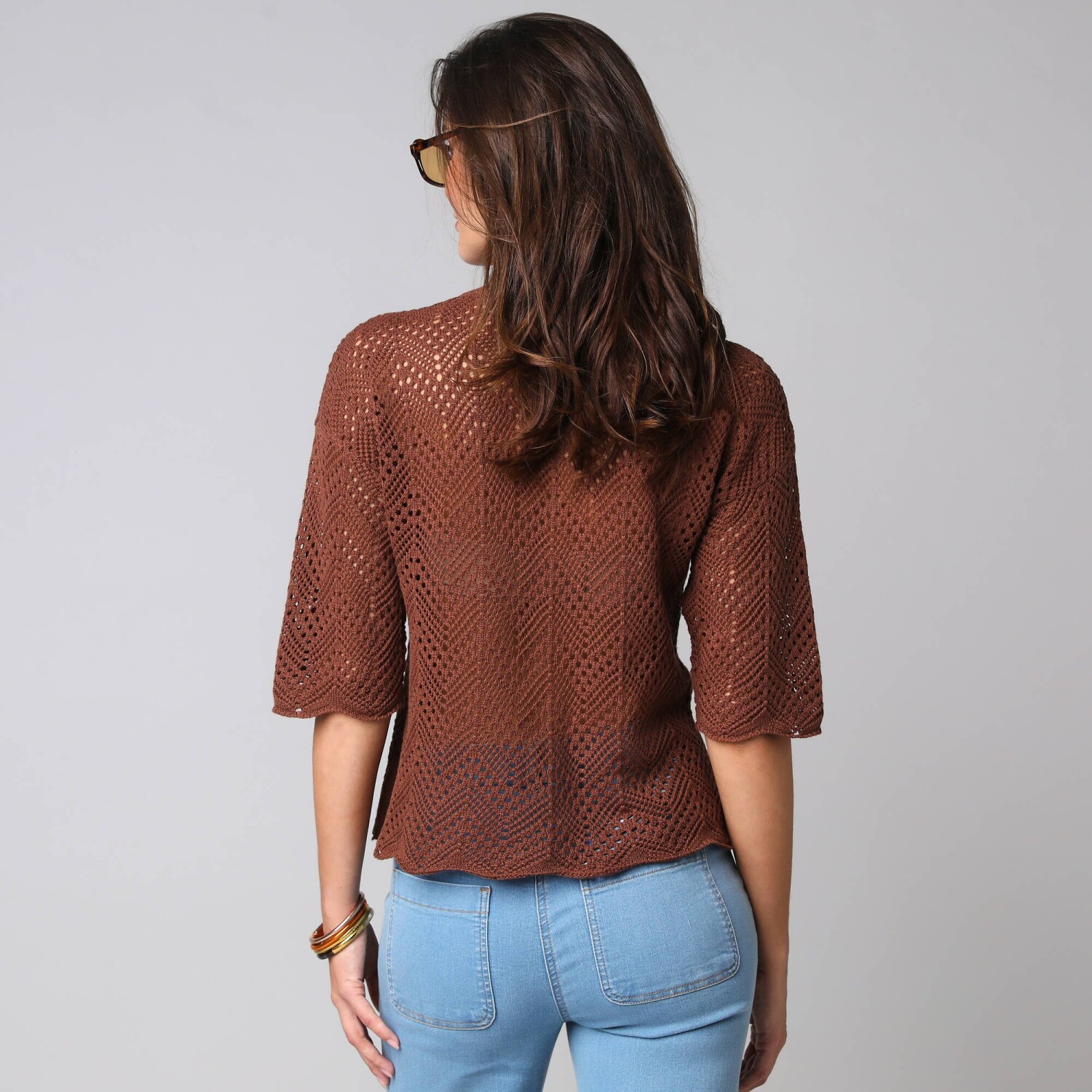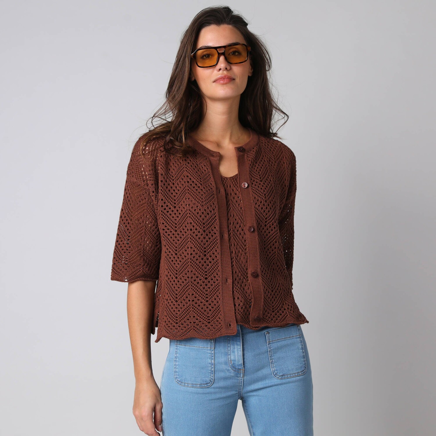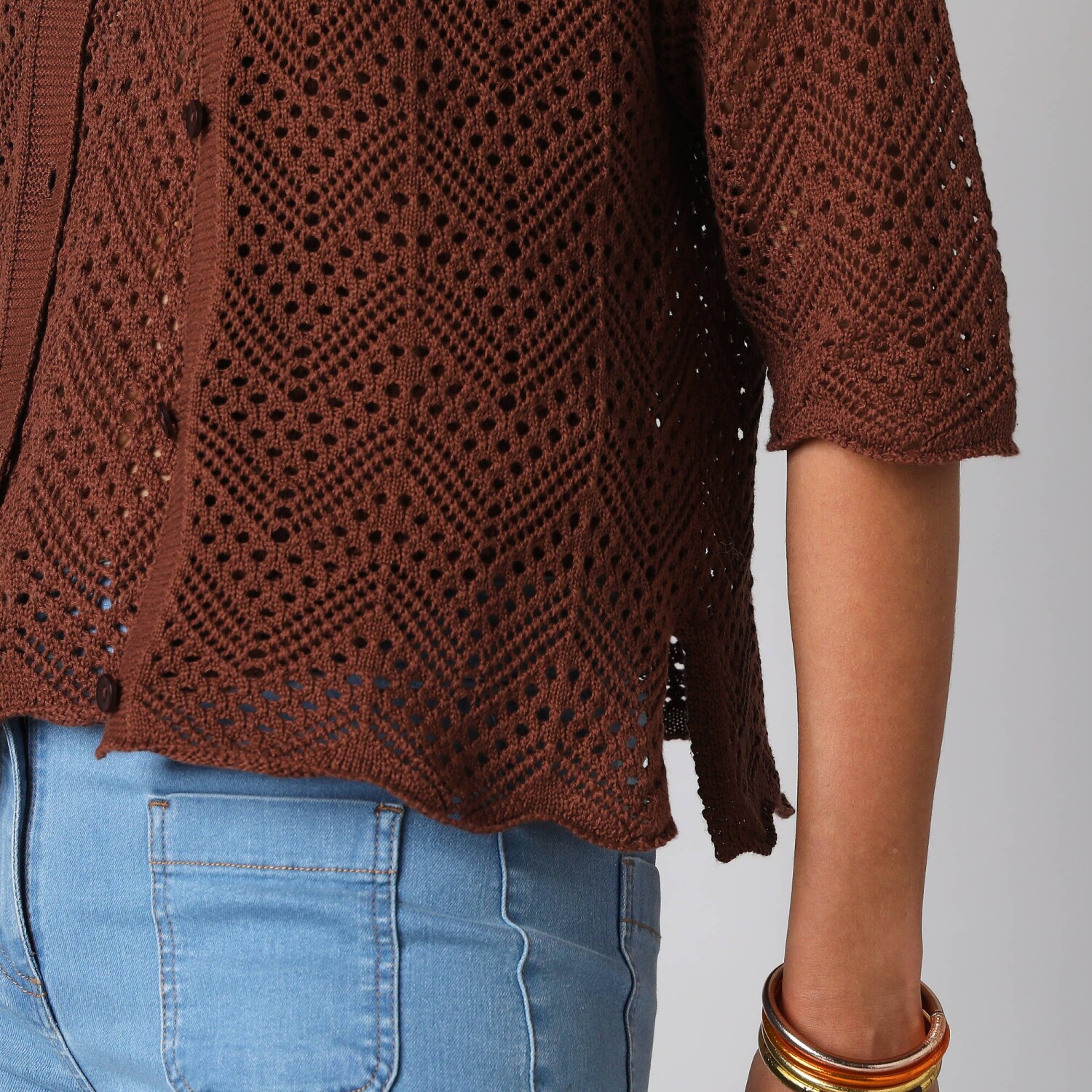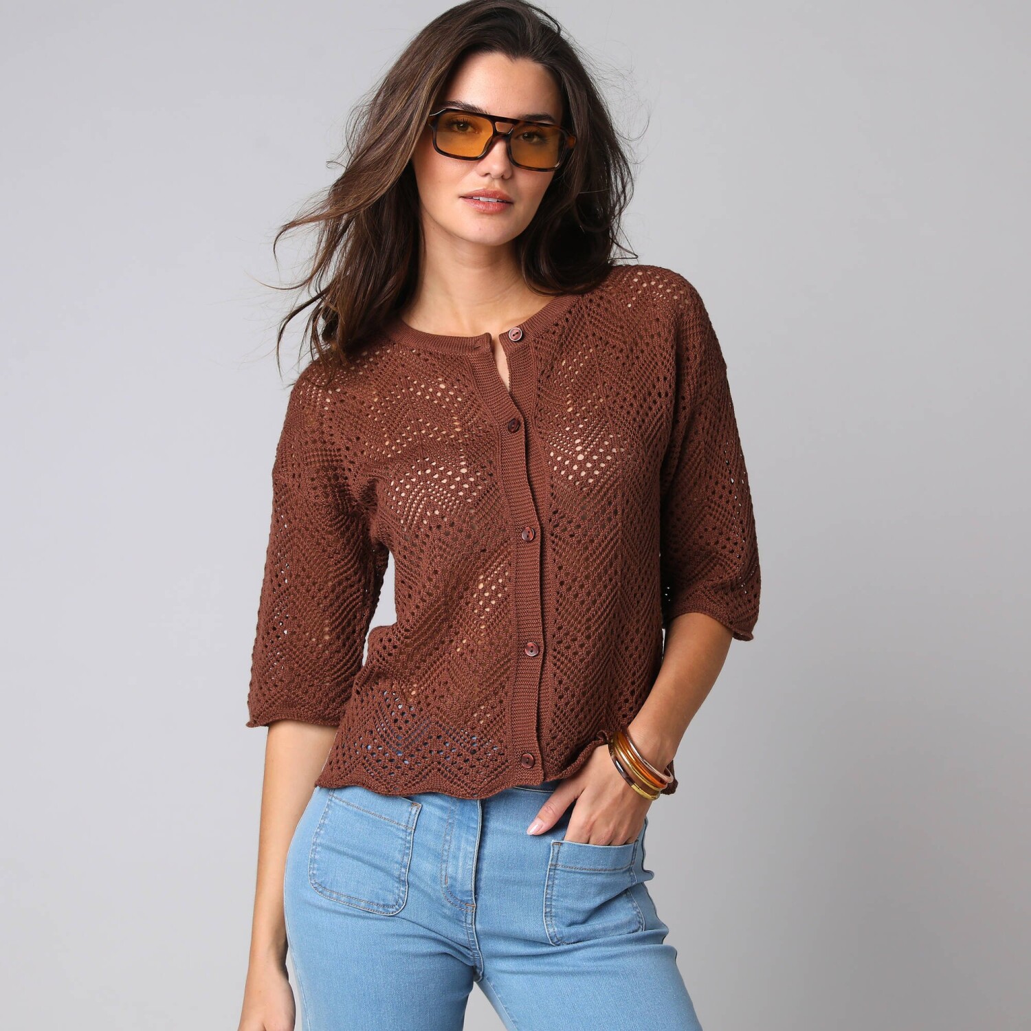 Propínací svetr s kapsami a 3/4 rukávy