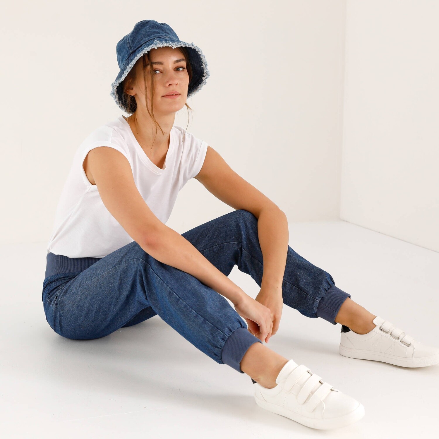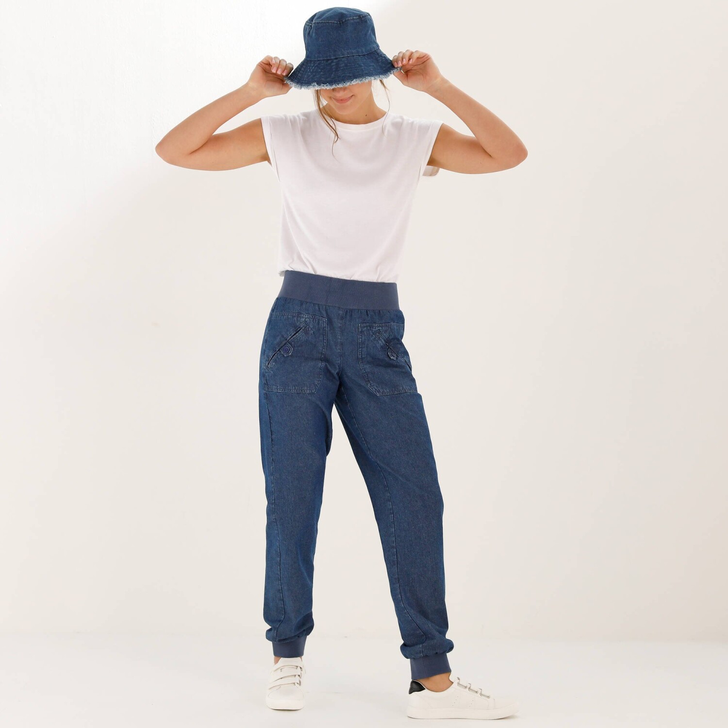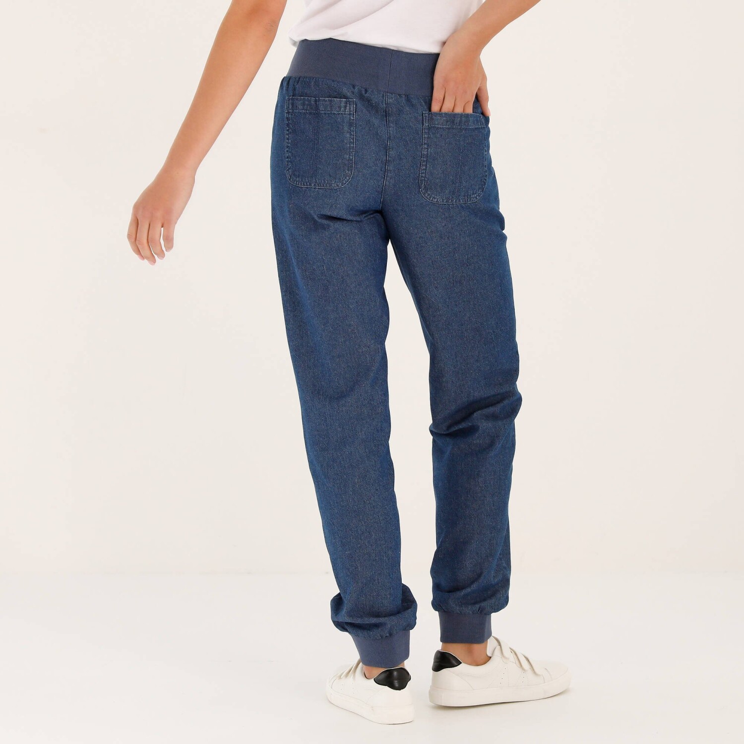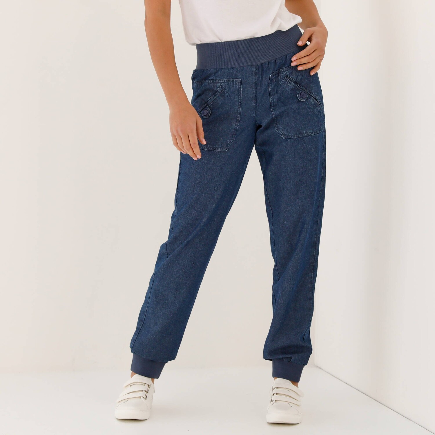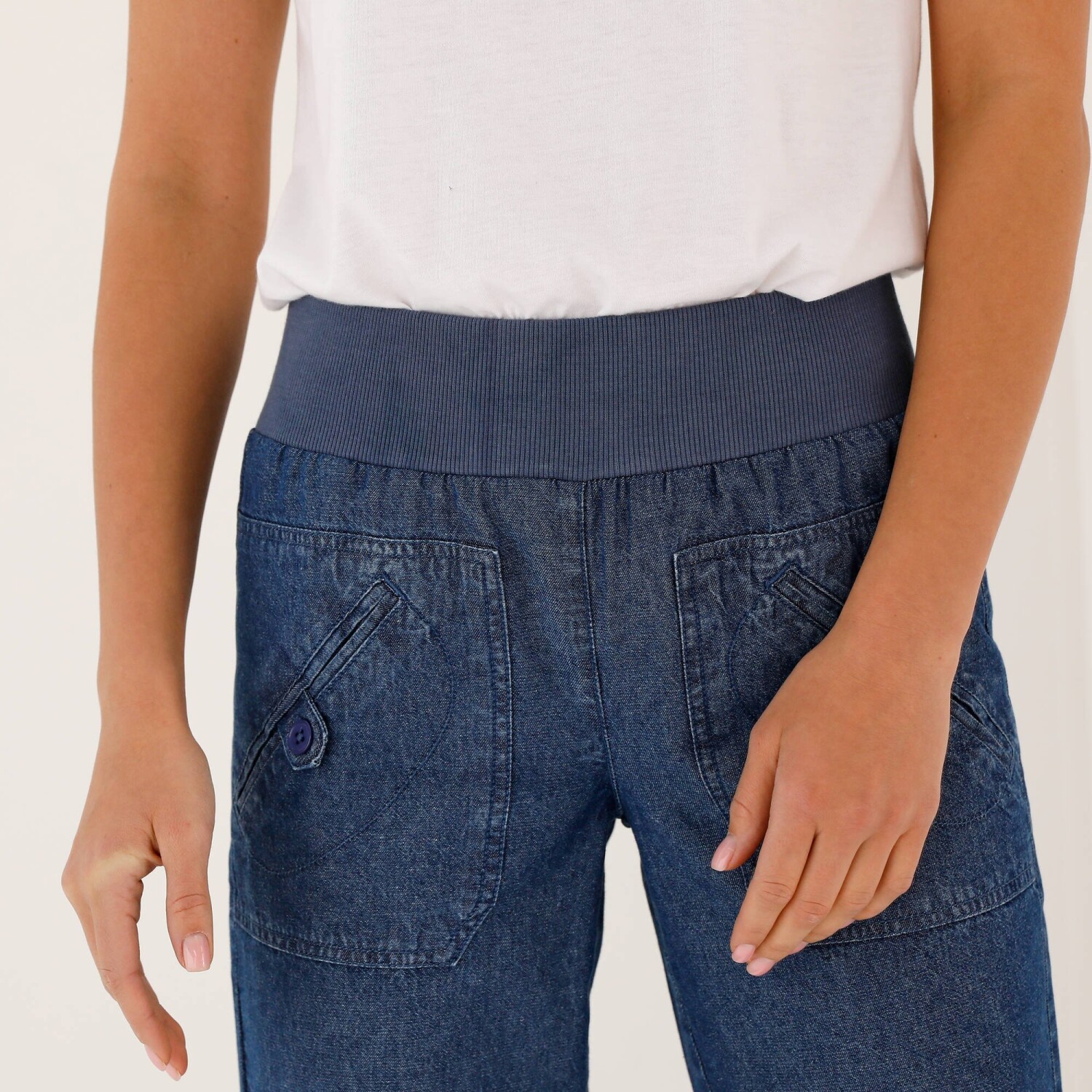 Rovné kalhoty s kapsami a nohavicemi na ohrnutí, denimové