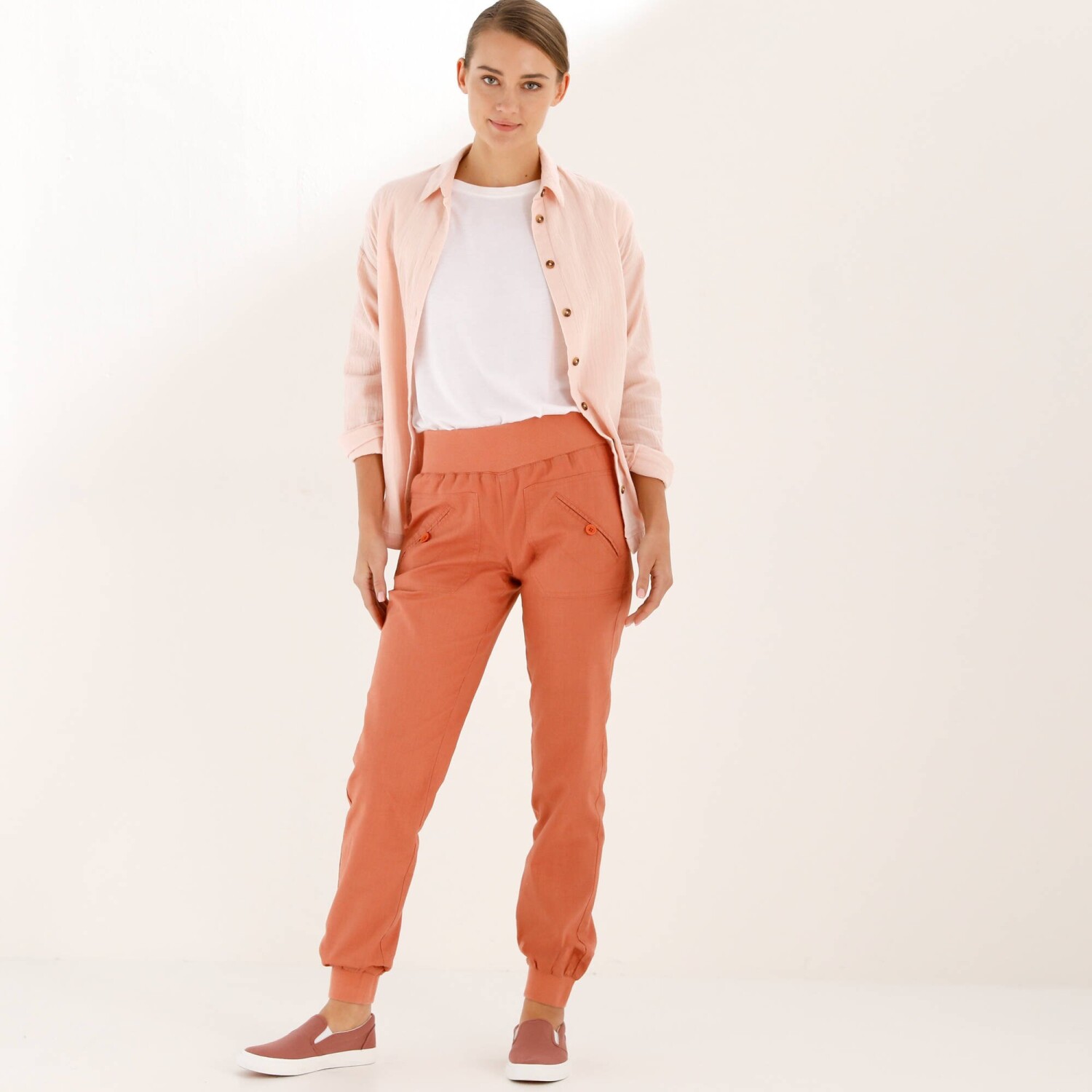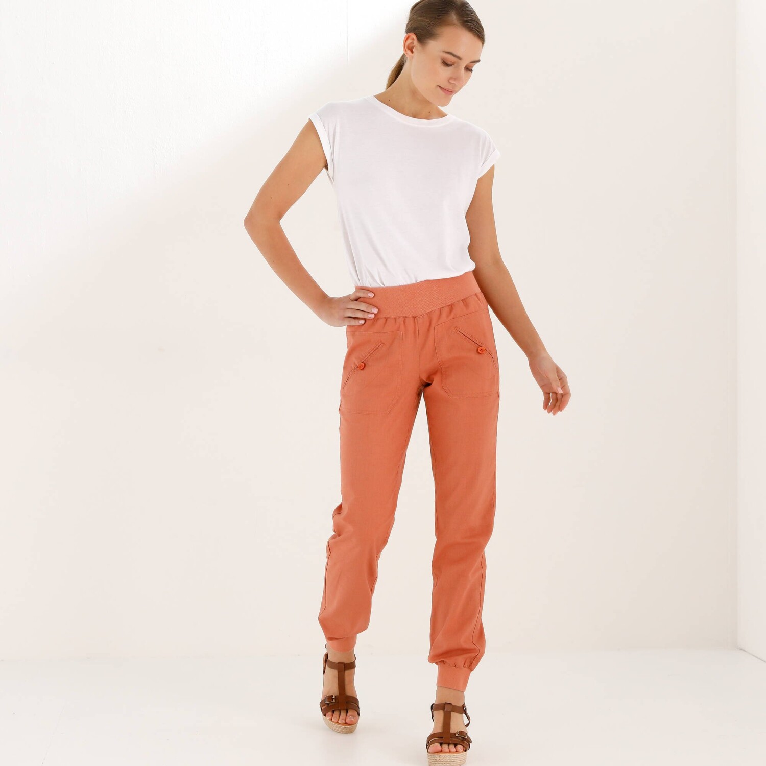 Rovné kalhoty s páskem pro postavu 150 až 155 cm