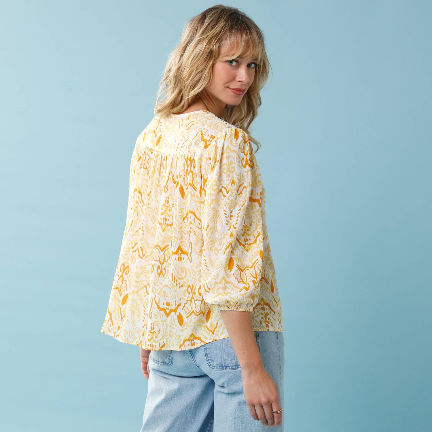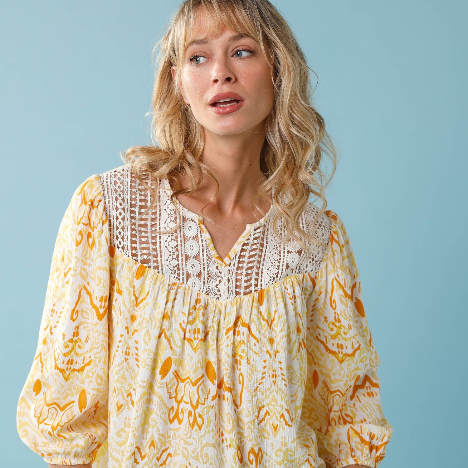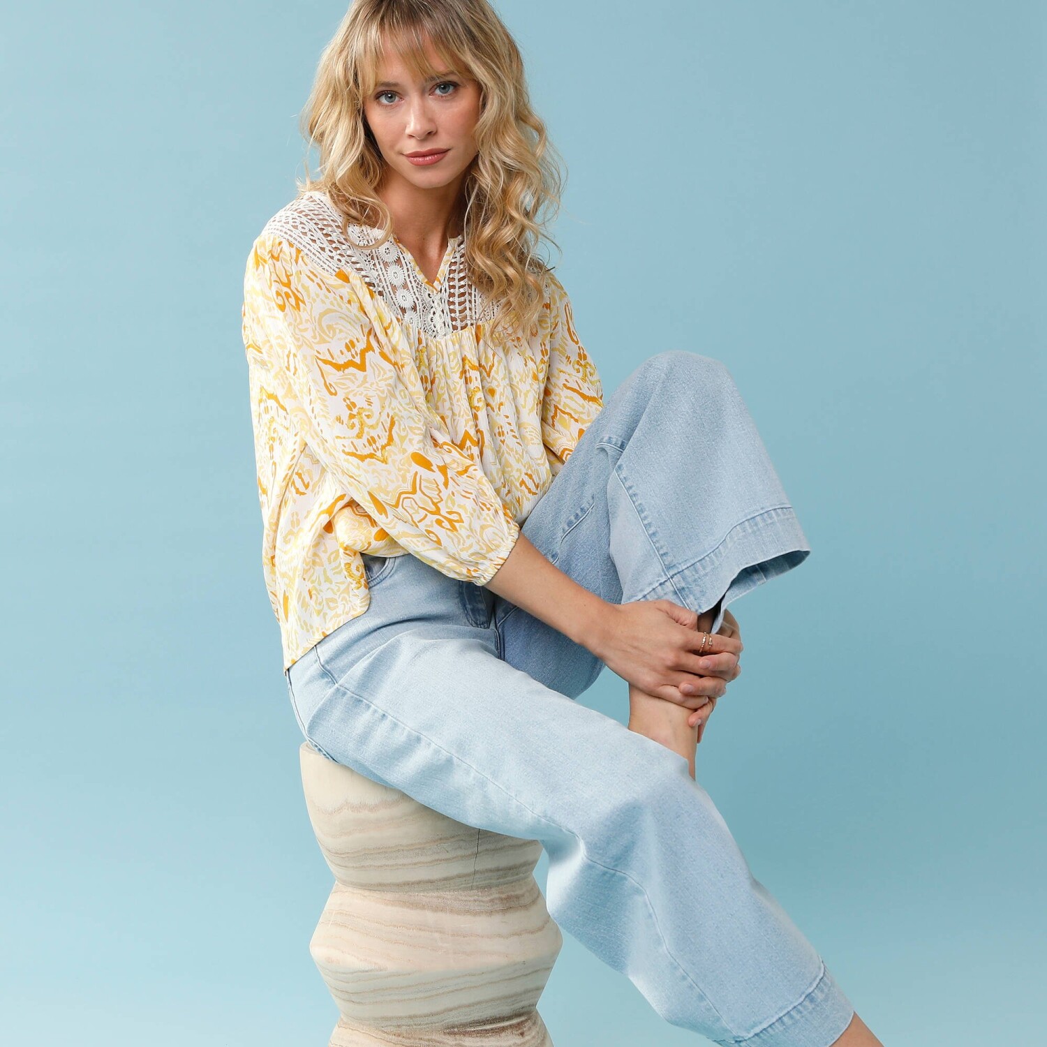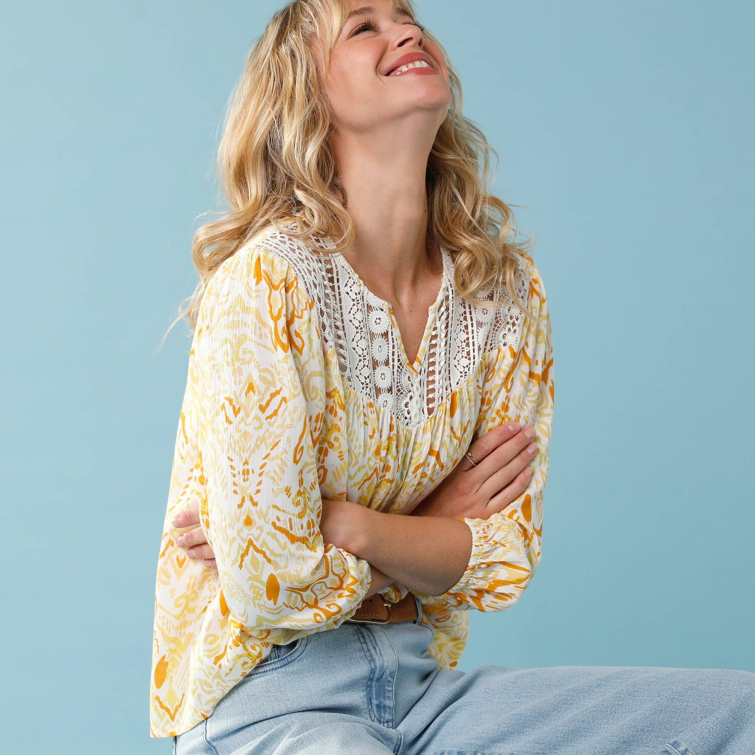 Jednobarevná halenka s krátkými rukávy a macramé proužky