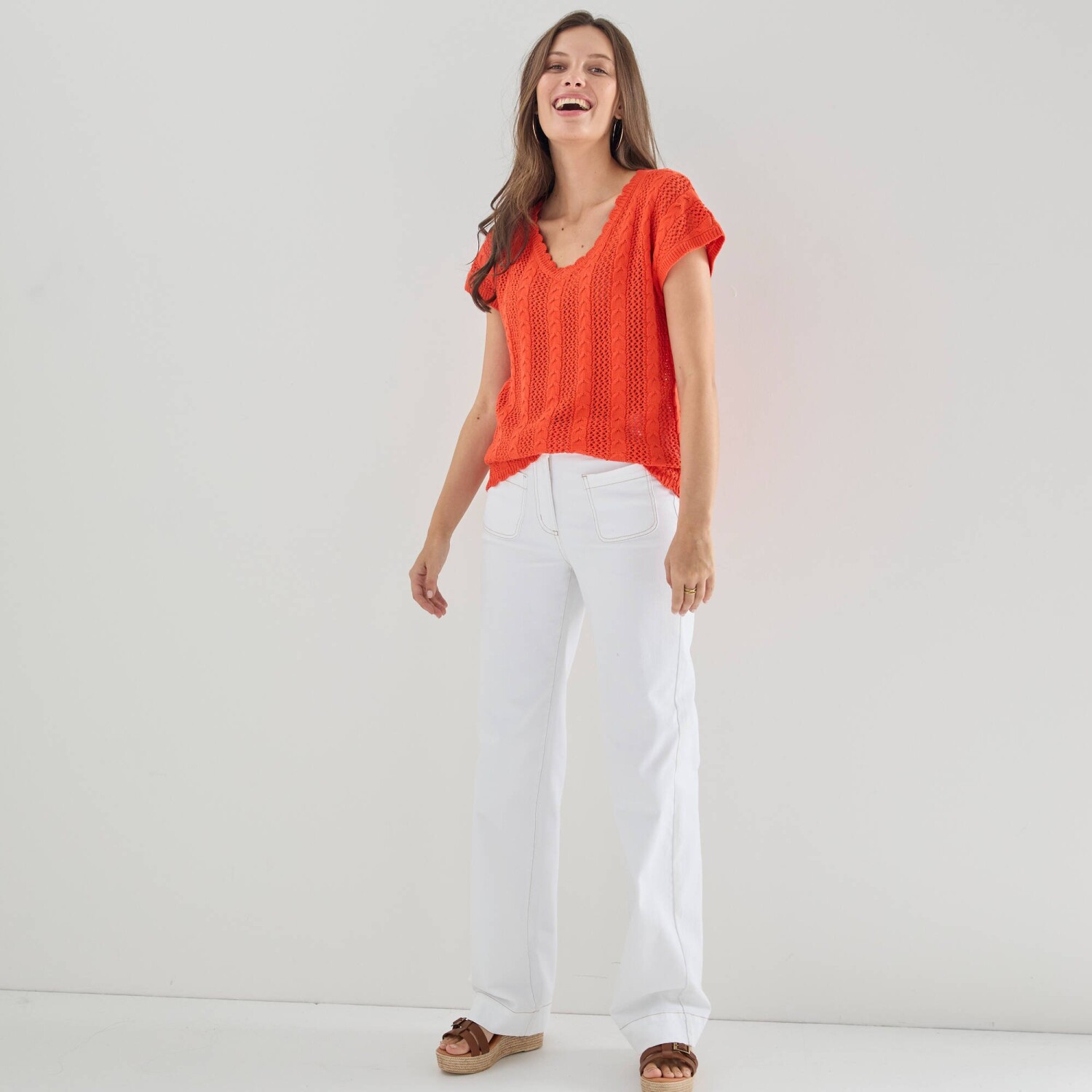 Halenka s výstřihem do V, z ažurového úpletu