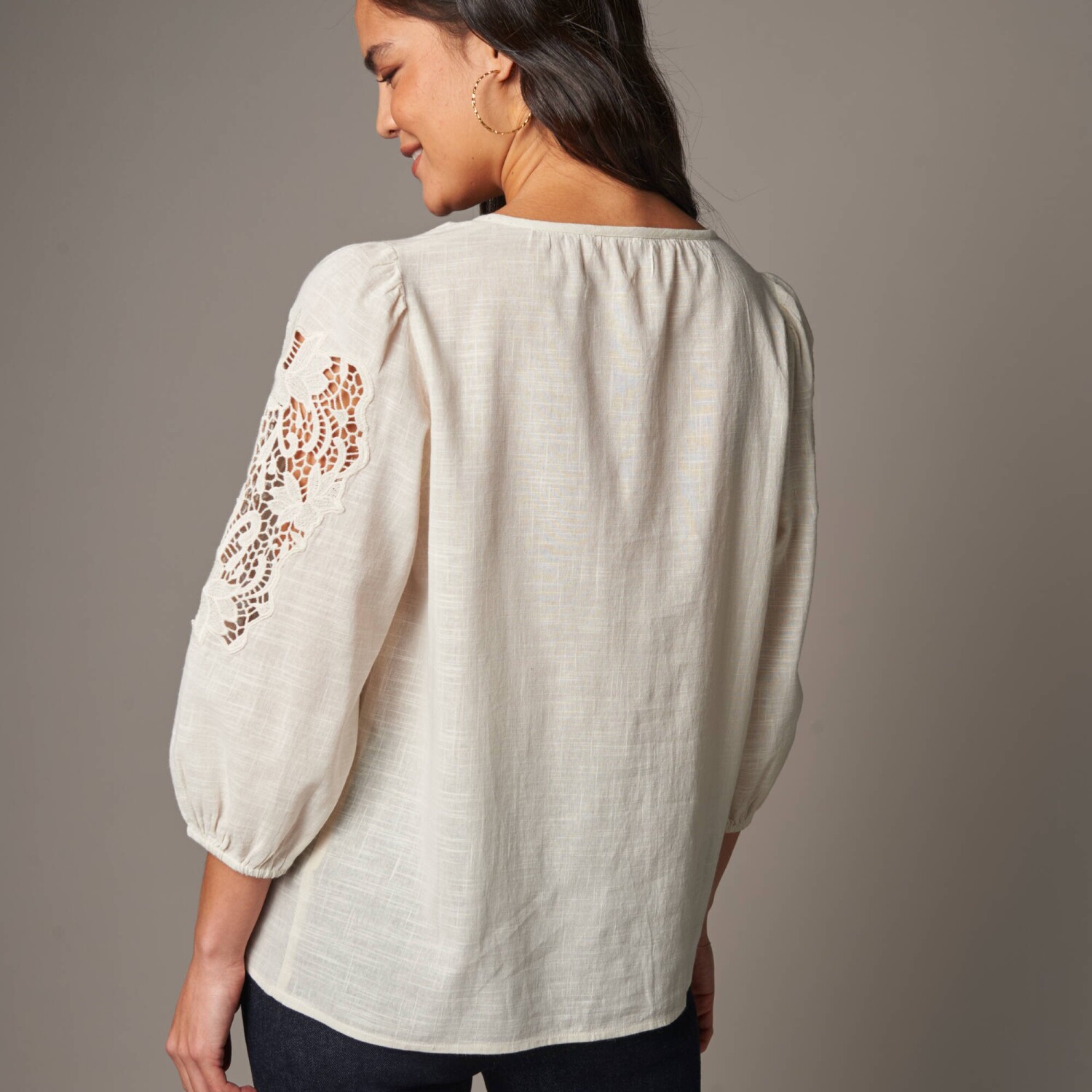 Halenka s výšivkou a ozdobným výstřihem se střapci