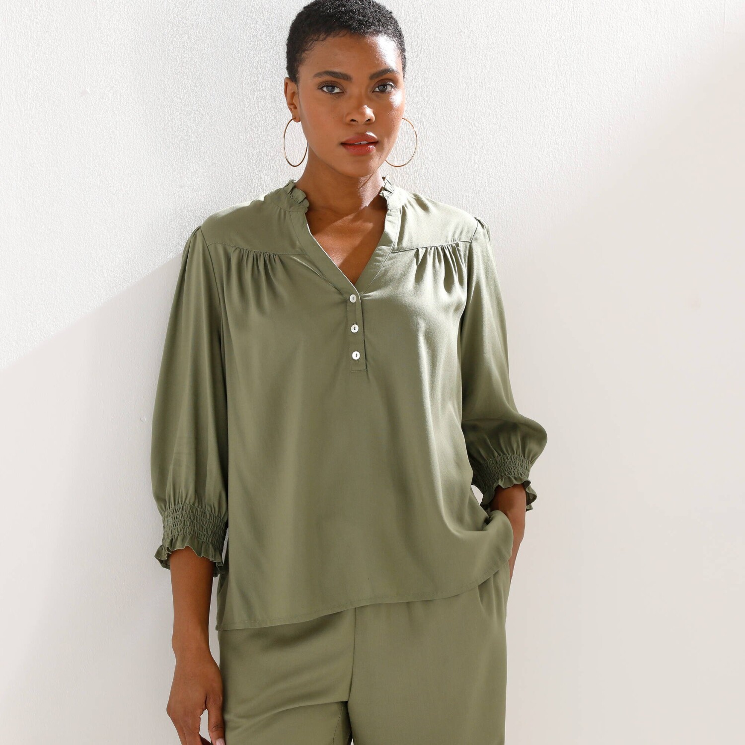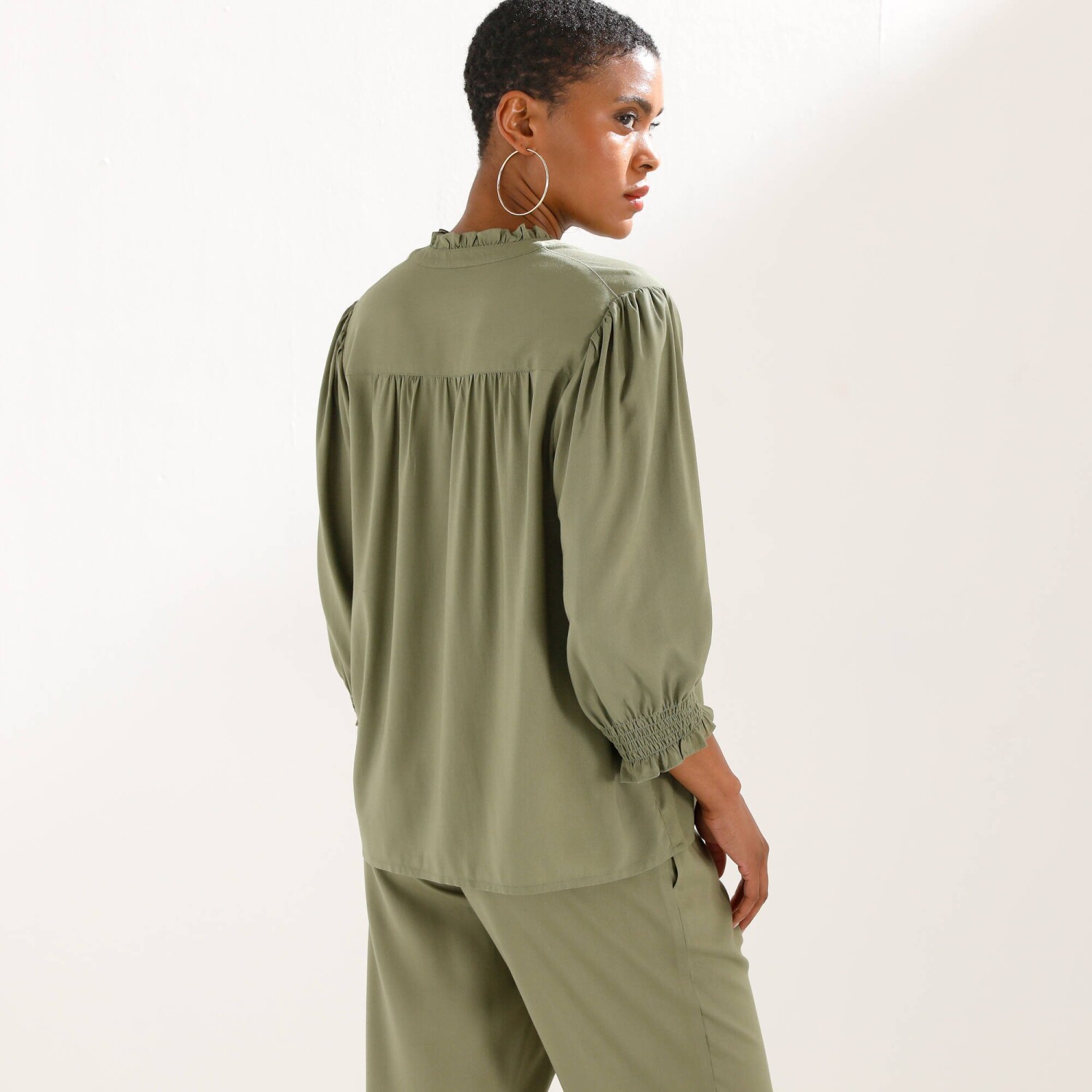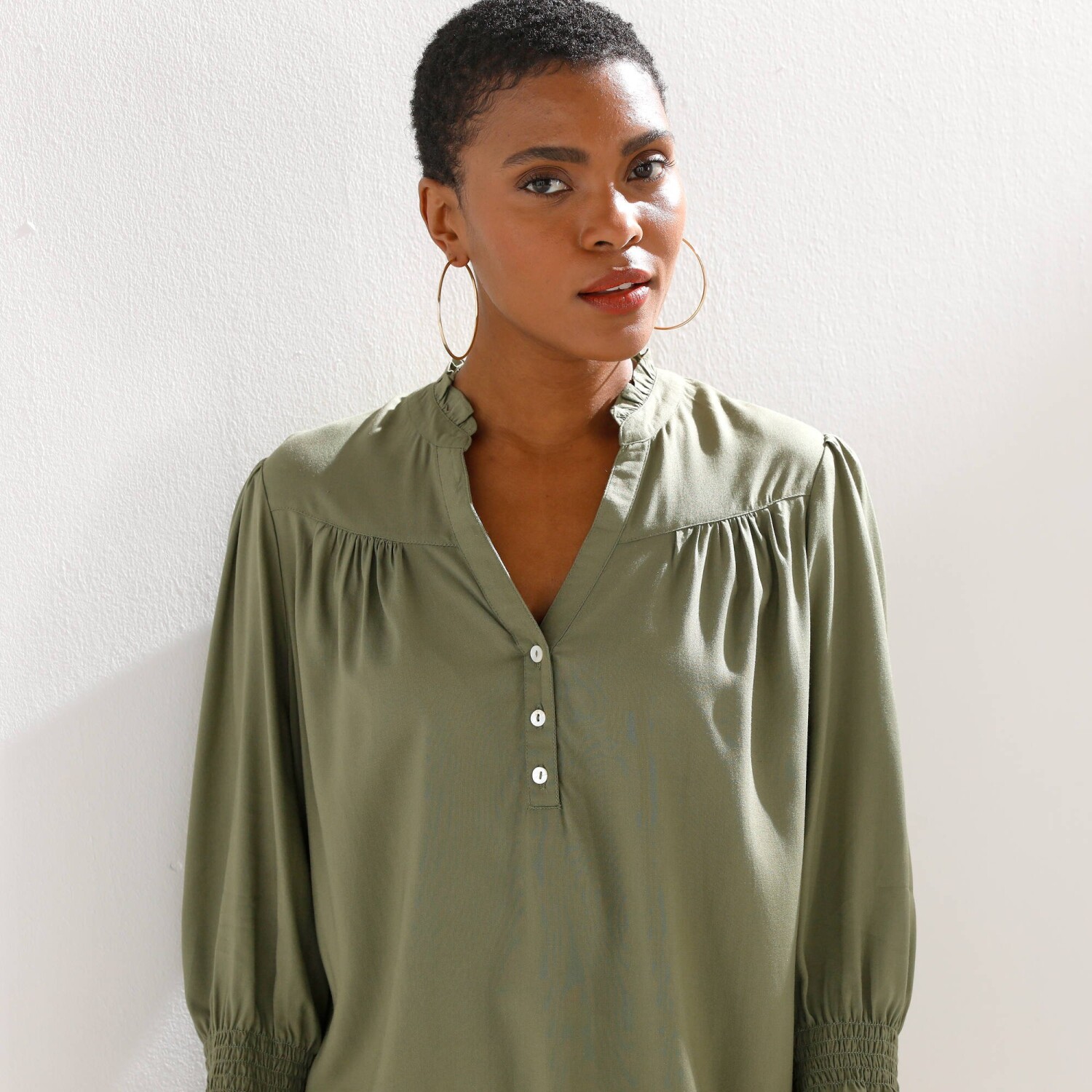 Halenka s výšivkou a ozdobným výstřihem se střapci