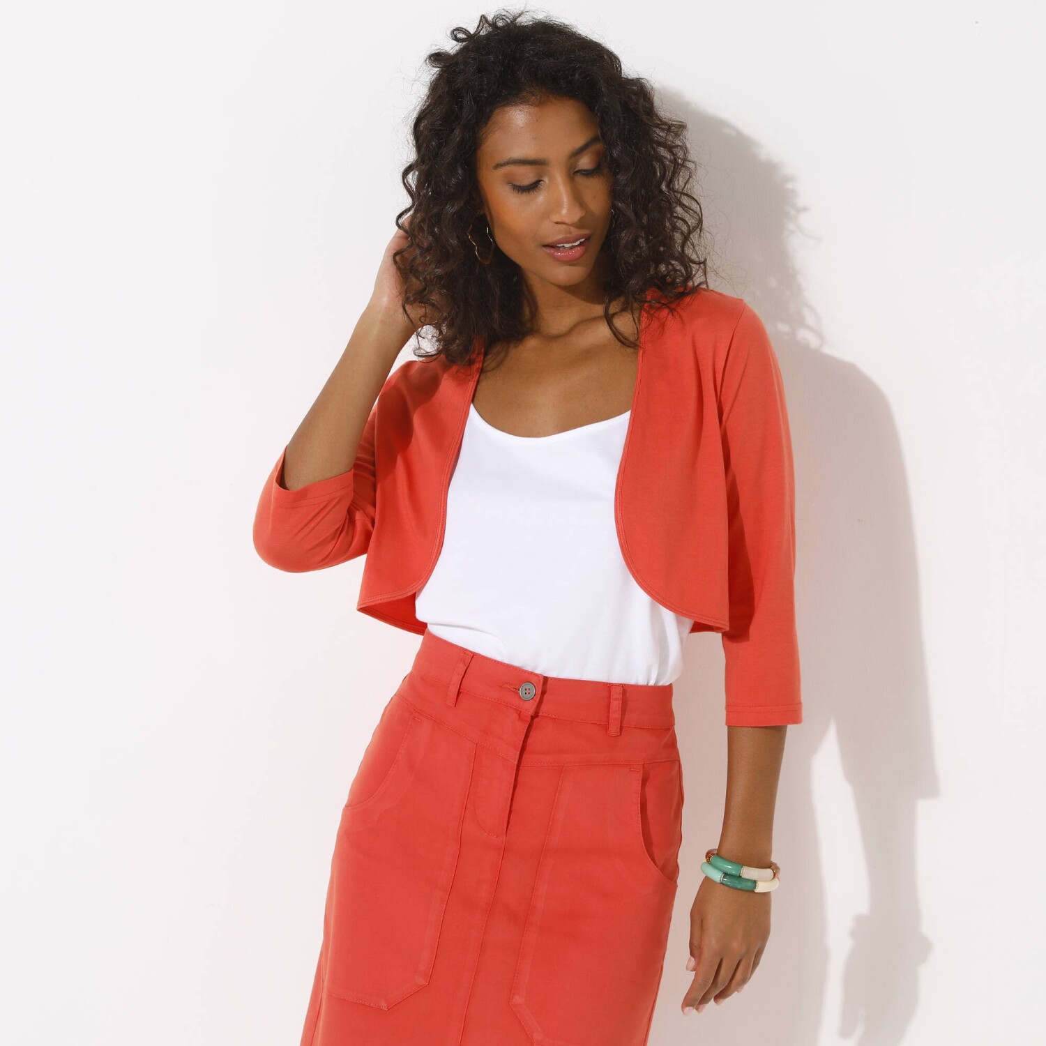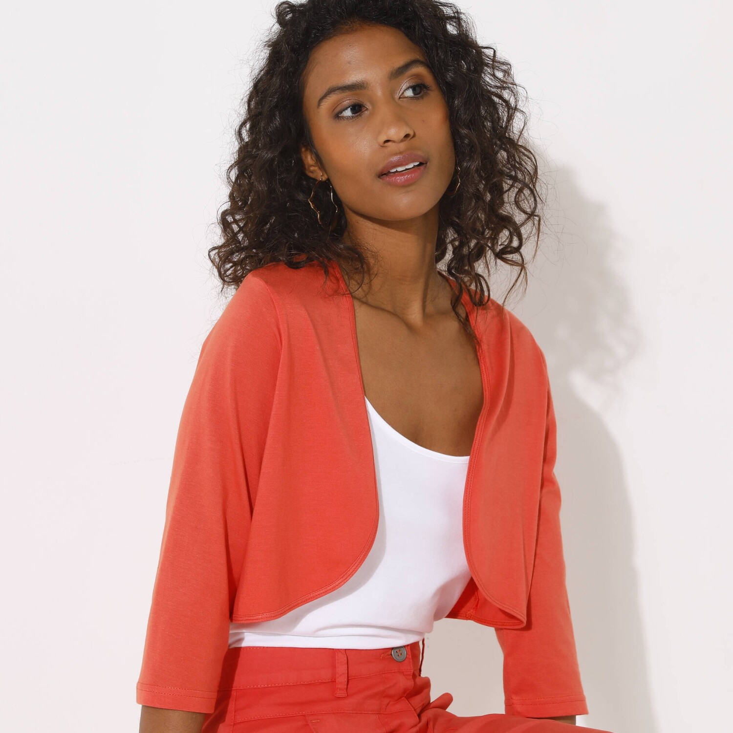Propínací svetr s výstřihem do V a 3/4 rukávy.