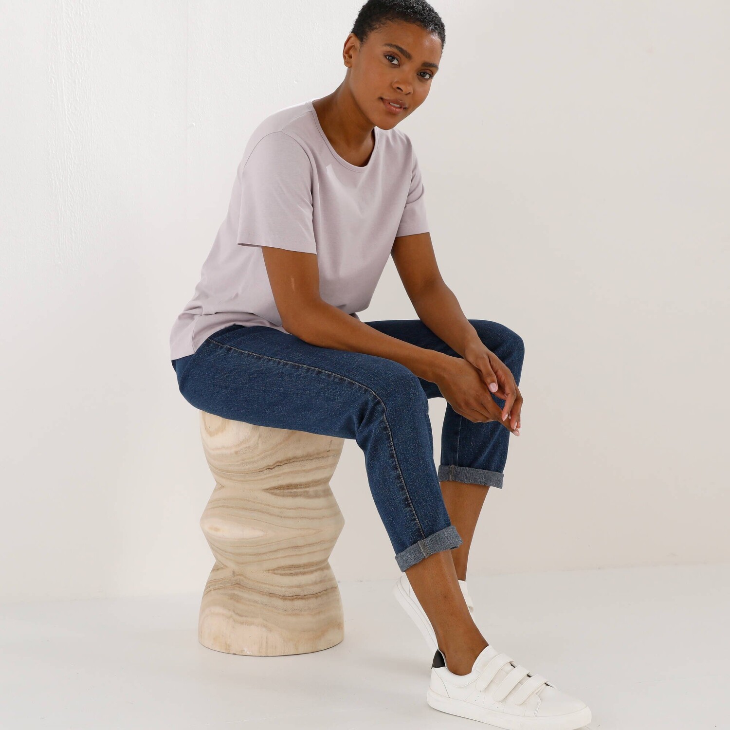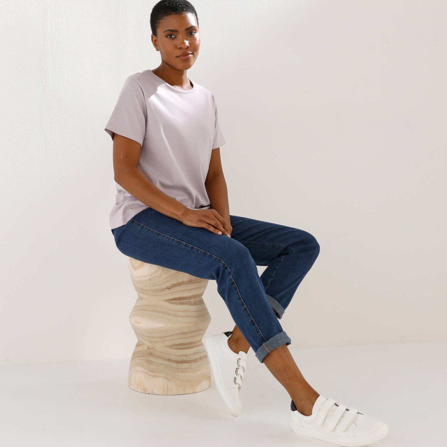 Pohodlné denimové 3/4 kalhoty s pružným pasem