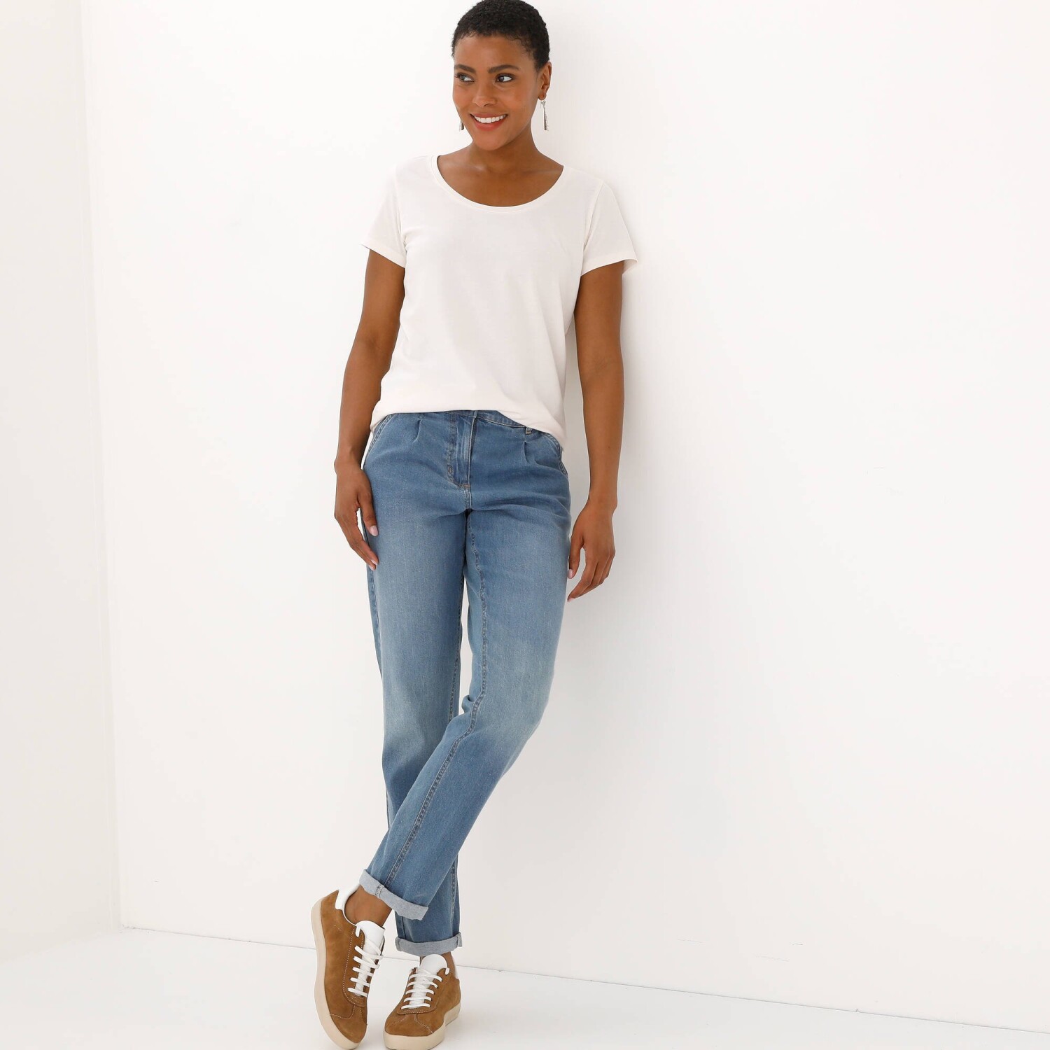 Pohodlné denimové 3/4 kalhoty s pružným pasem