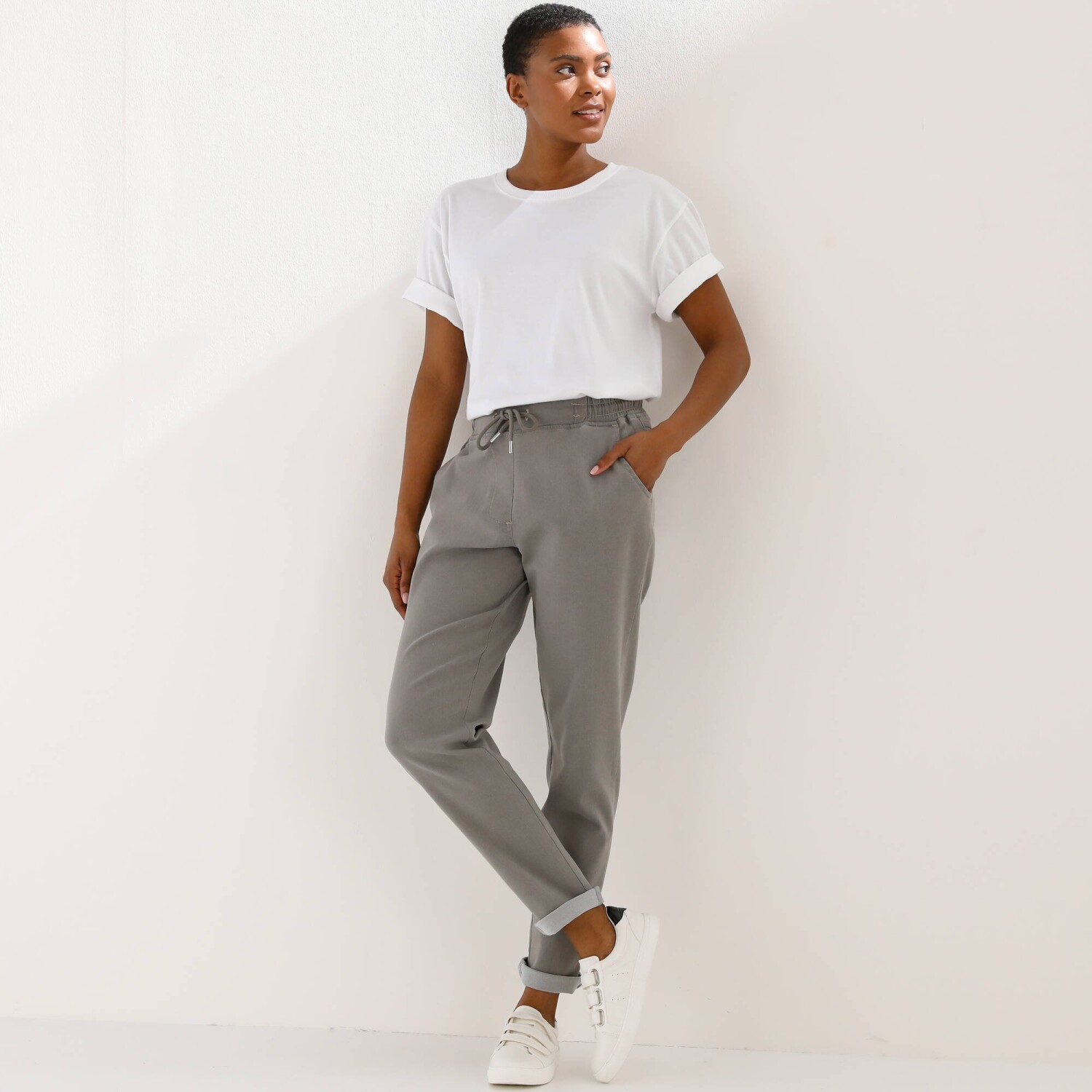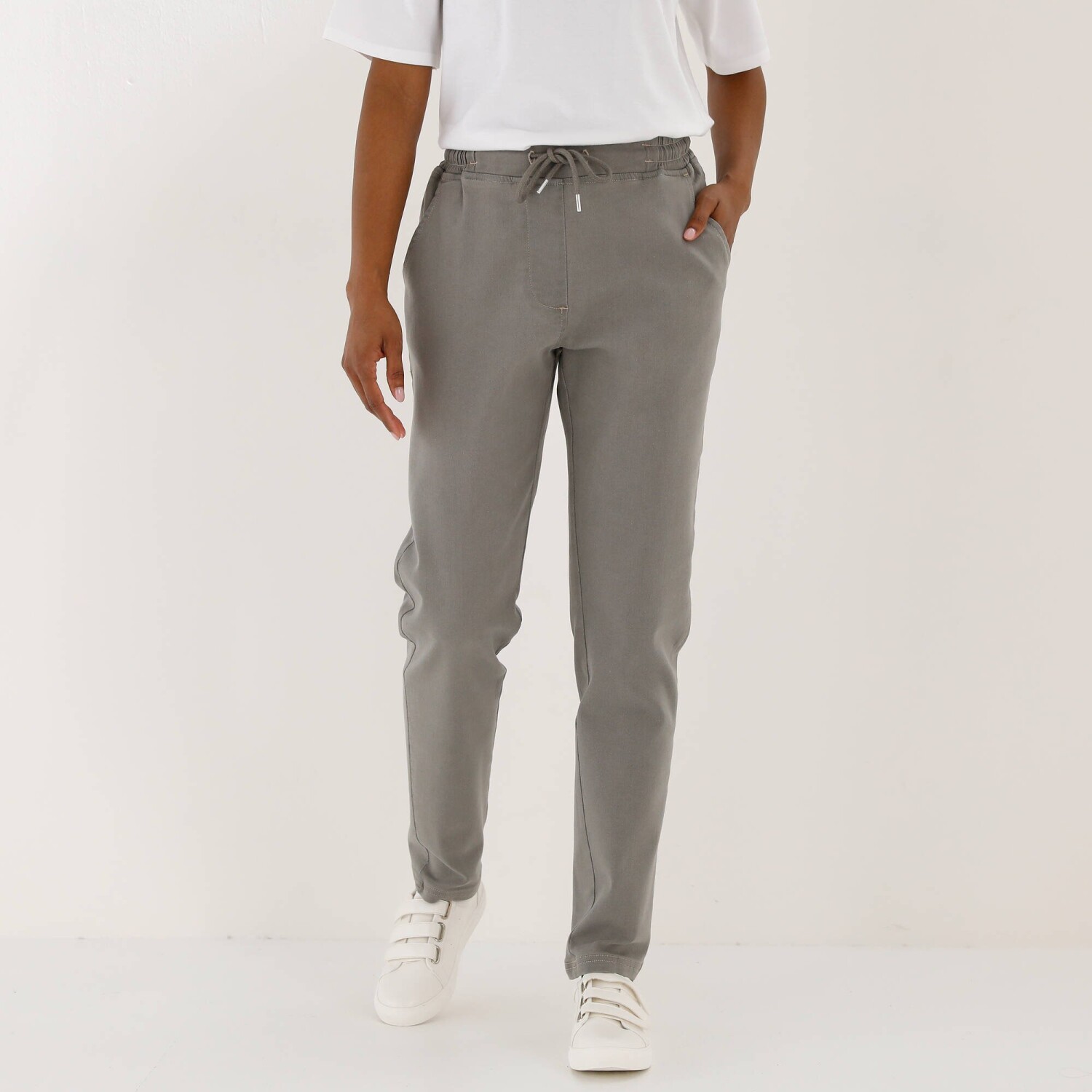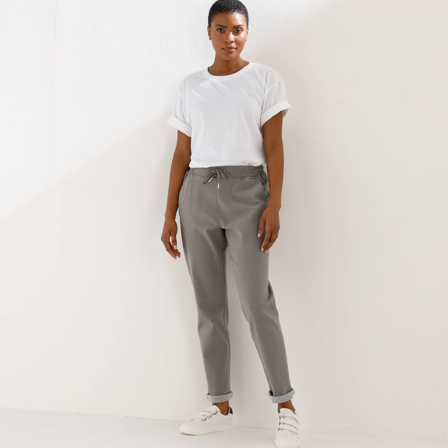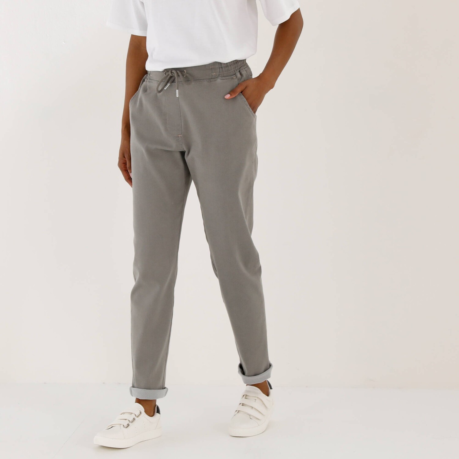 Pohodlné denimové 3/4 kalhoty s pružným pasem