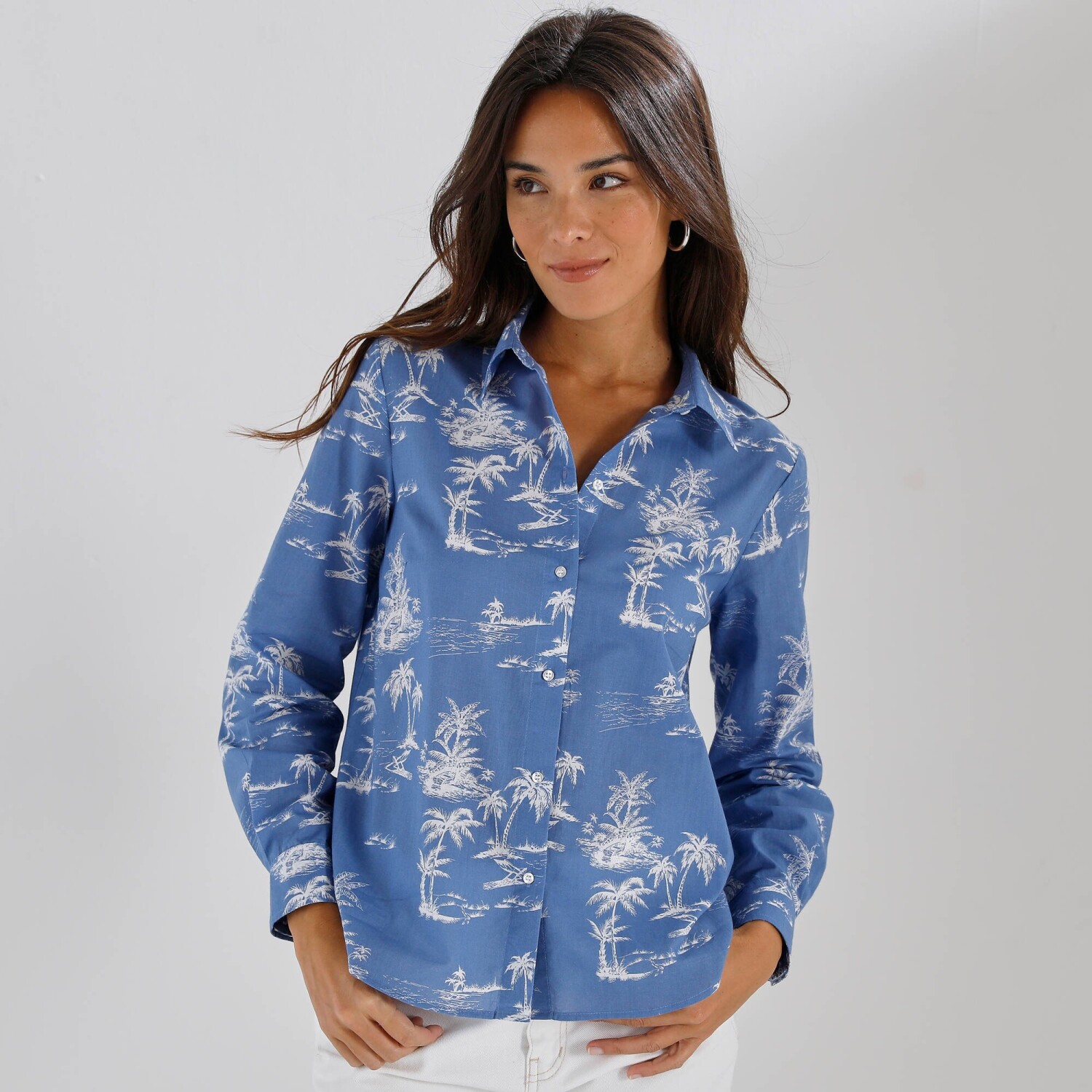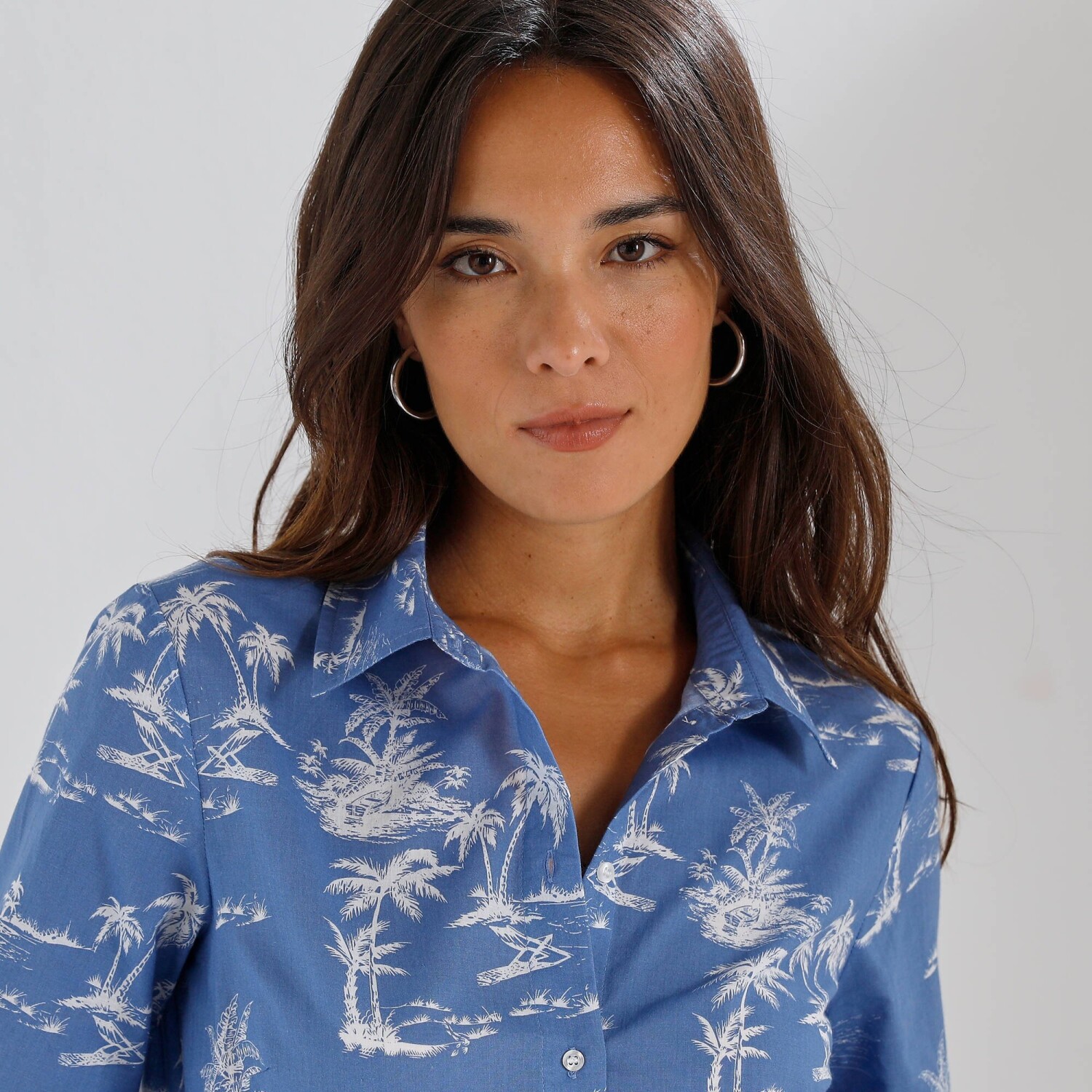 Halenka na knoflíčky s kostkovaným potiskem a kulatým výstřihem