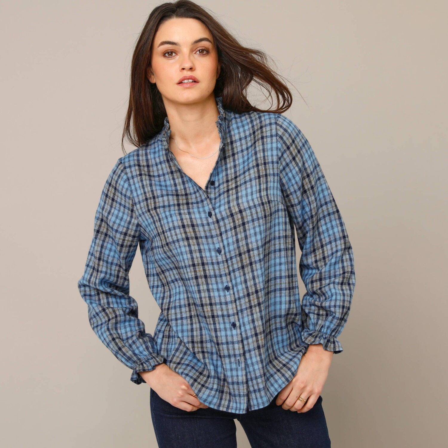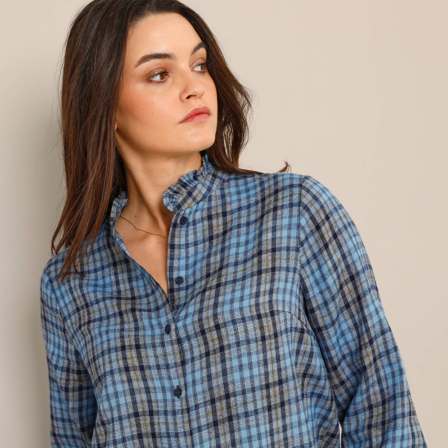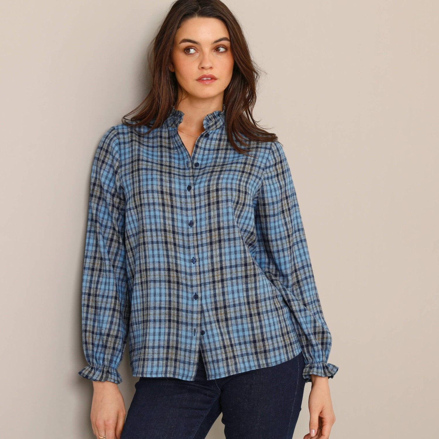 Měkká a teplá flanelová halenka v košilovém střihu nezůstane bez povšimnutí! Sluší každému typu postavy. Jemný a hřejivý flanel. Barvená vlákna pro barevnou stálost a odolnost praní. Stojáček s volánem. Vpředu propínací na knoflíky. Dlouhé rukávy. Pružné konce rukávů s volánem. Vzadu vsadka a nařasení. Rovný dolní lem. Lze prát v pračce.