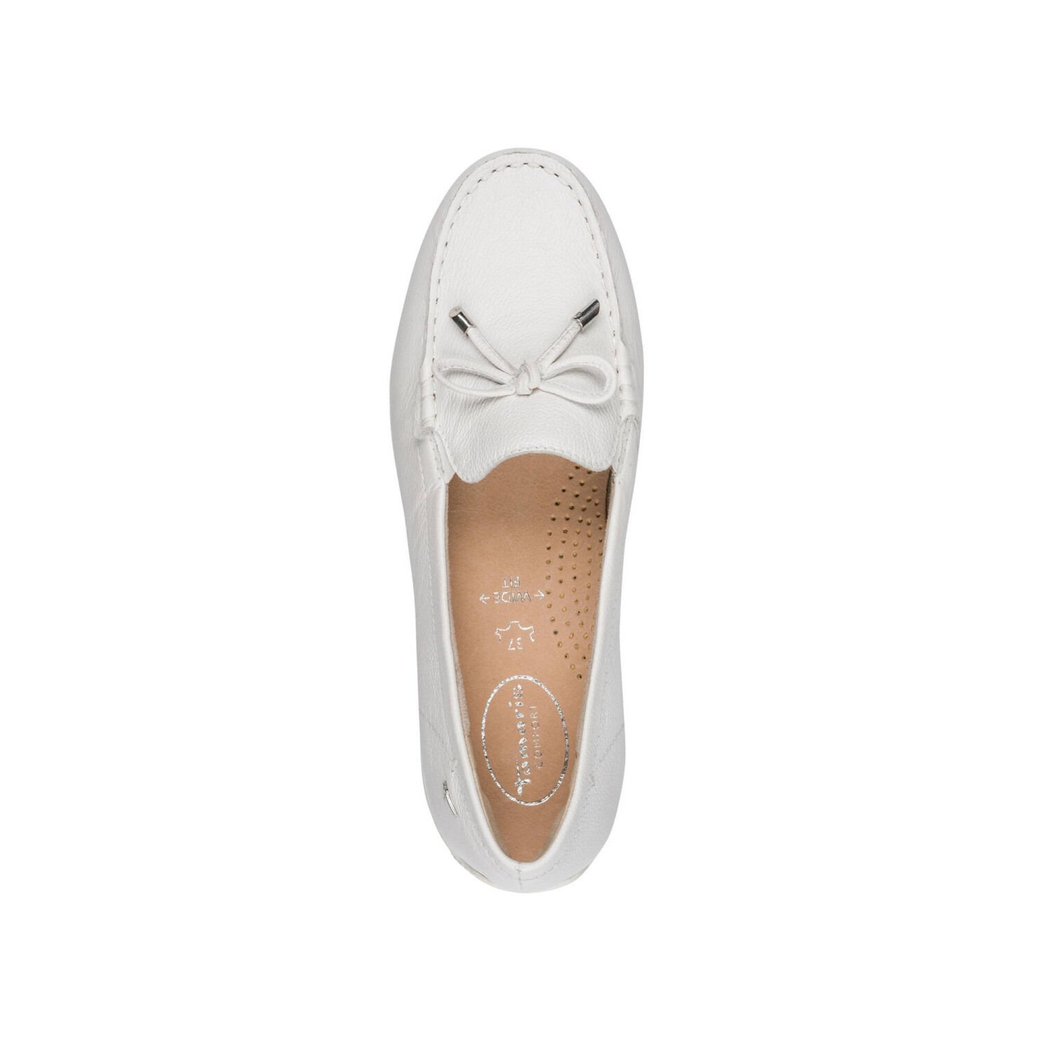 Kožené lesklé mokasíny Tamaris Comfort® ví, jak zaujmout. Z kvalitní kůže a s měkkou stélkou, ocení je i širší a citlivá chodidla. Kvalitní pravá kůže. Na každé straně pruženka. Kožená pěnová stélka pro měkký došlap. Protiskluzová podrážka. Na svršku mašlička.