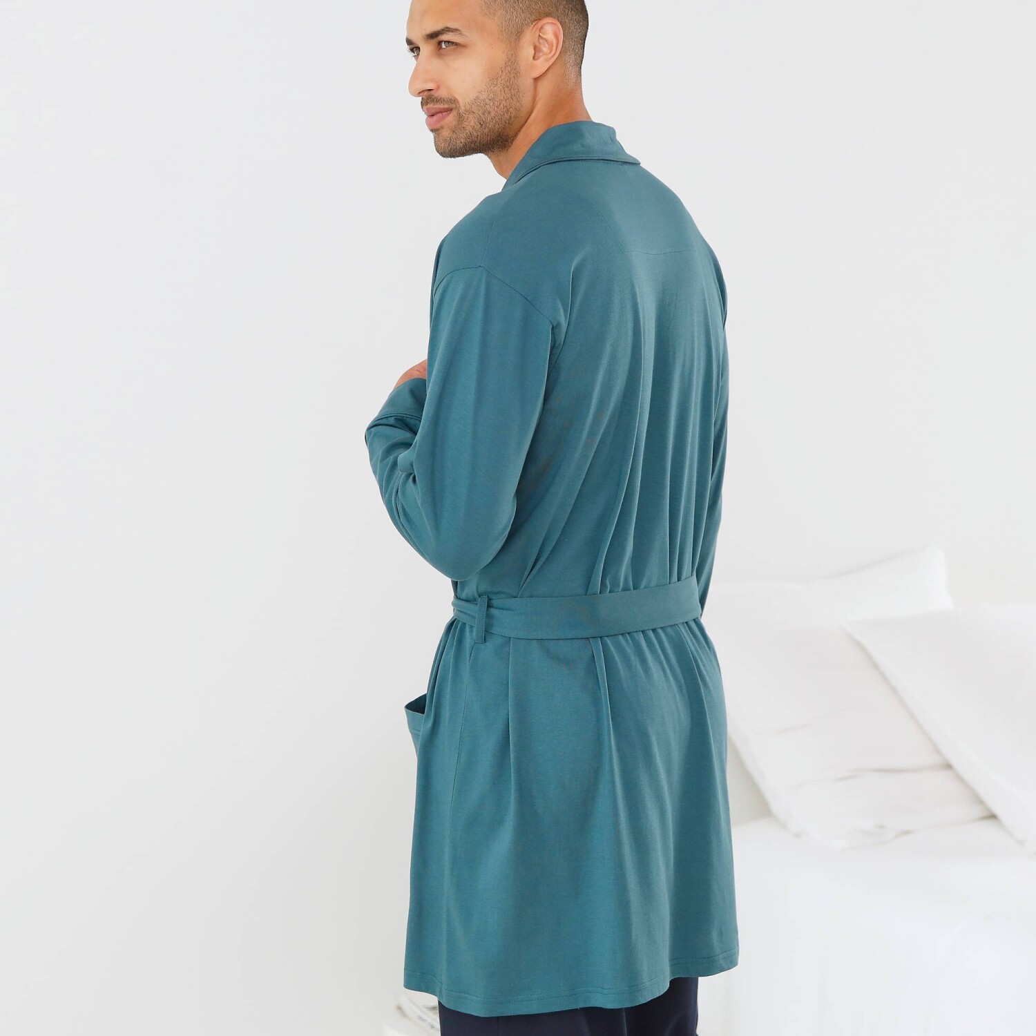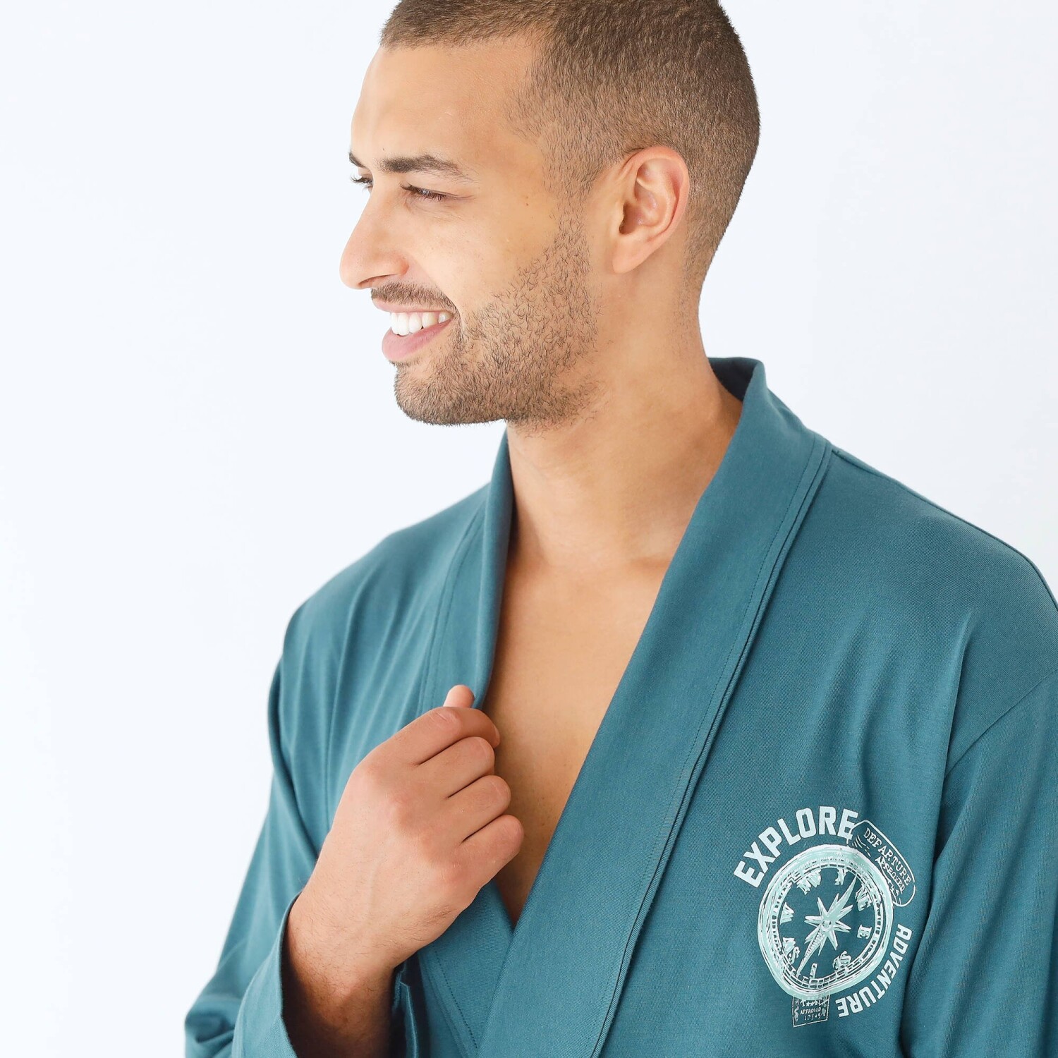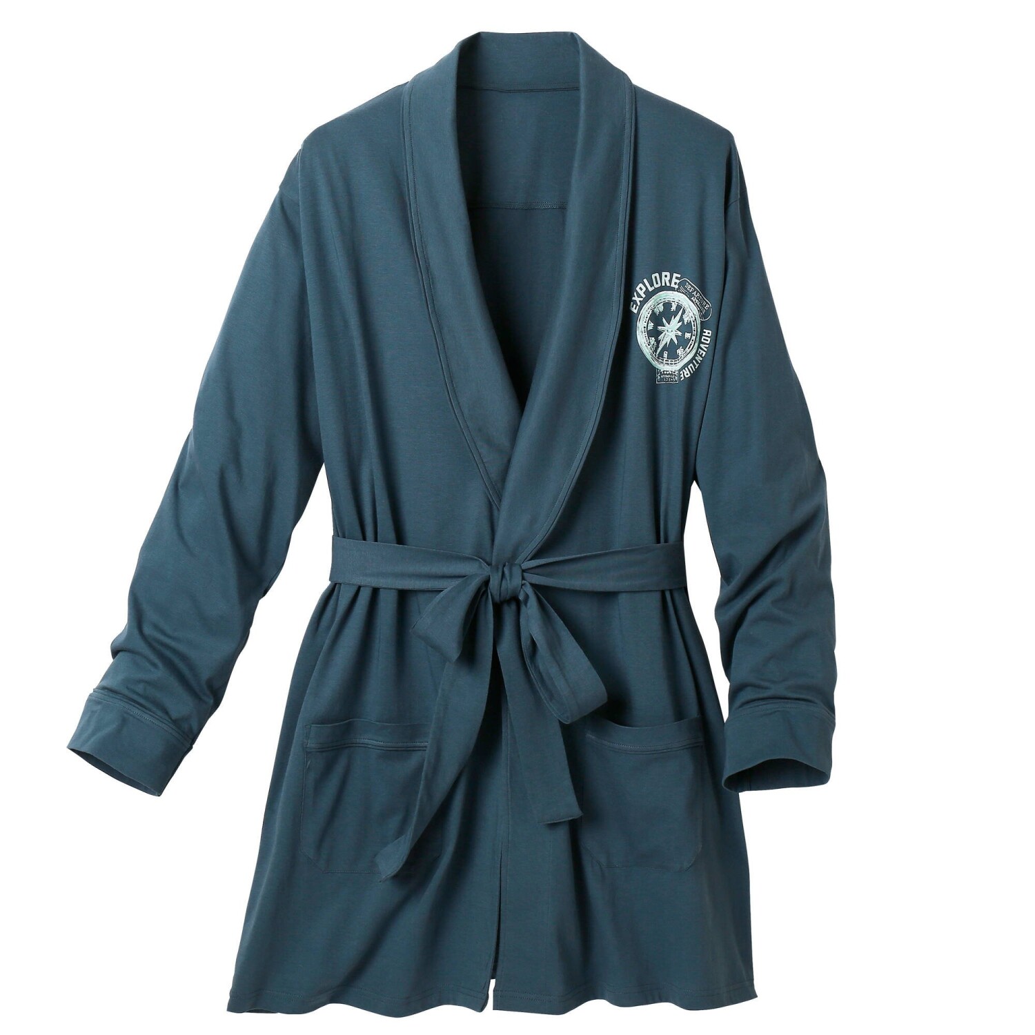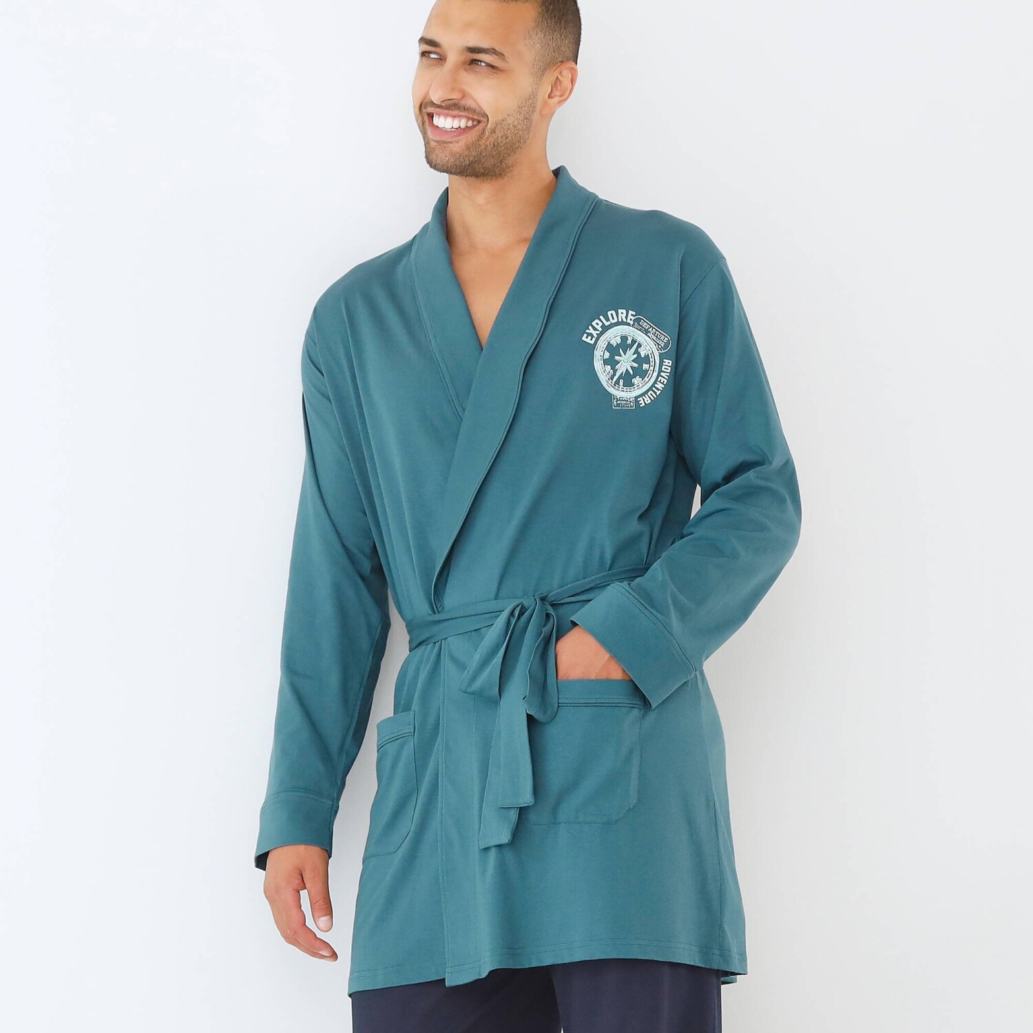Z pružného bavlněného žerzeje, krátký jednobarevný župan se postará o pocit pohodlí a spokojenosti u Vás doma. Šálový límec. Na hrudníku středový potisk. Dlouhé rukávy. 2 našité kapsy. Pásek na zavázání + vnitřní šňůrky. Zakončení paspulkou tón v tónu na kapsách a koncích rukávů. Standard 100 podle Oeko-Tex (n° CQ 1216 / 3 IFTH). Tato známka označuje textilní výrobky, které byly podrobeny laboratorním testům na široké spektrum škodlivých látek a výrobek je bezpečný nad rámec platných norem. Lze prát v pračce.