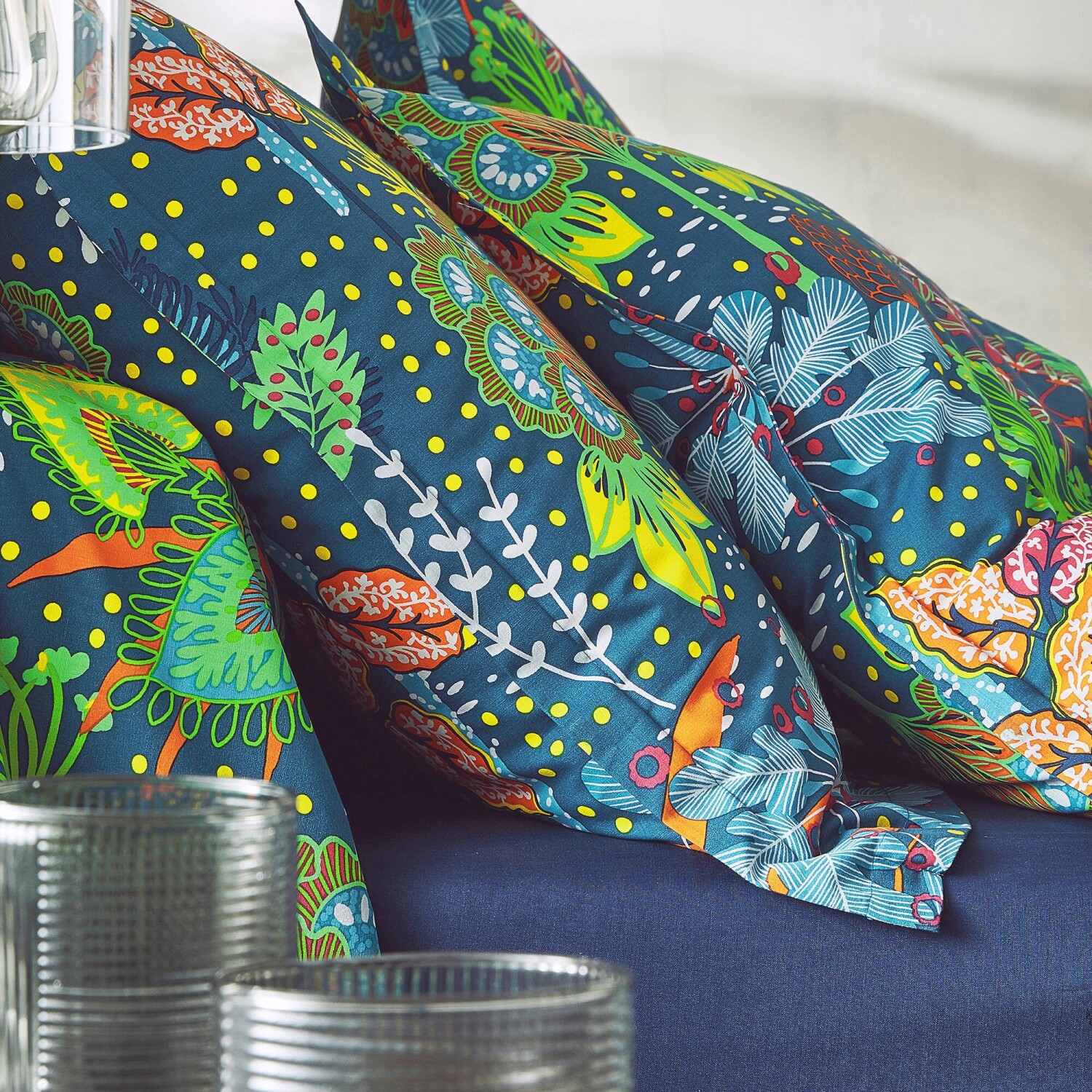 Povlečení Laureline zn. Colombine se inspirovalo motivy přírody. Materiál vybraný pro svou pevnost a odolnost. Pevná a pravidelná tkanina. Kolekce se souvislým potiskem. Souprava obsahuje povlak na obdélníkový polštář a povlak na peřinu v klasickém českém rozměru. Dále je v nabídce například povlak na polštář s plochým volánem (3 cm) a povlak na váleček. Povlak na přikrývku se 2 stejnými stranami, v typicky francouzském stylu ve tvaru lahve pro zasunutí konce pod matraci. Klasické a napínací prostěradlo. Exkluzivní návrh Blancheporte. Standard 100 podle Oeko-Tex (n° CQ 1216/1 IFTH). Tato známka označuje textilní výrobky, které byly podrobeny laboratorním testům na široké spektrum škodlivých látek a výrobek je bezpečný nad rámec platných norem. Lze prát až na 60 °C, pro ochranu životního prostředí doporučujeme prát na 40 °C a sušit volně na vzduchu. Žehlete na mírný stupeň, rychleschnoucí.