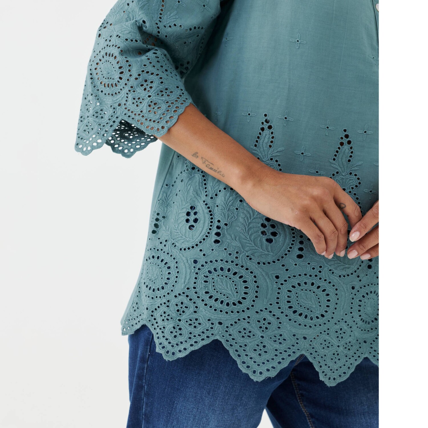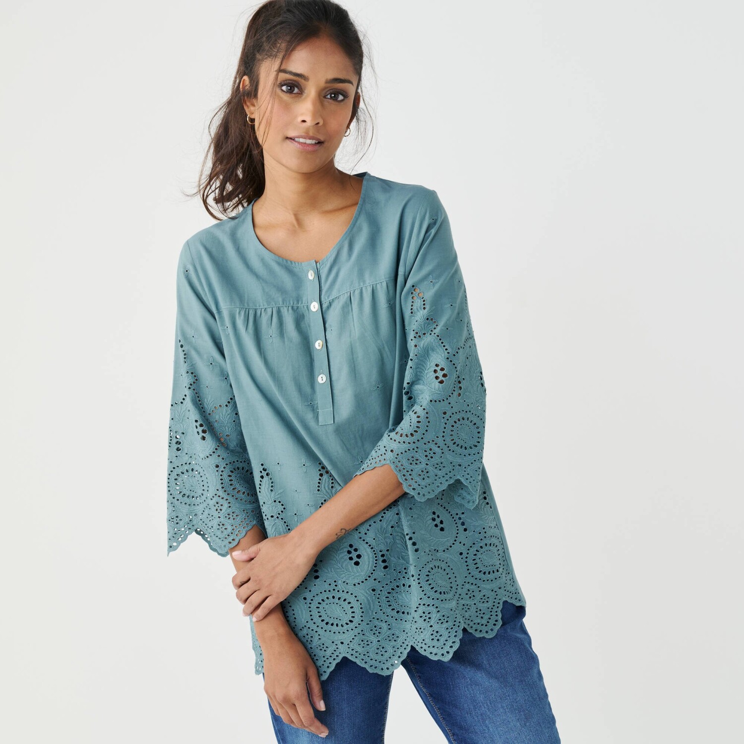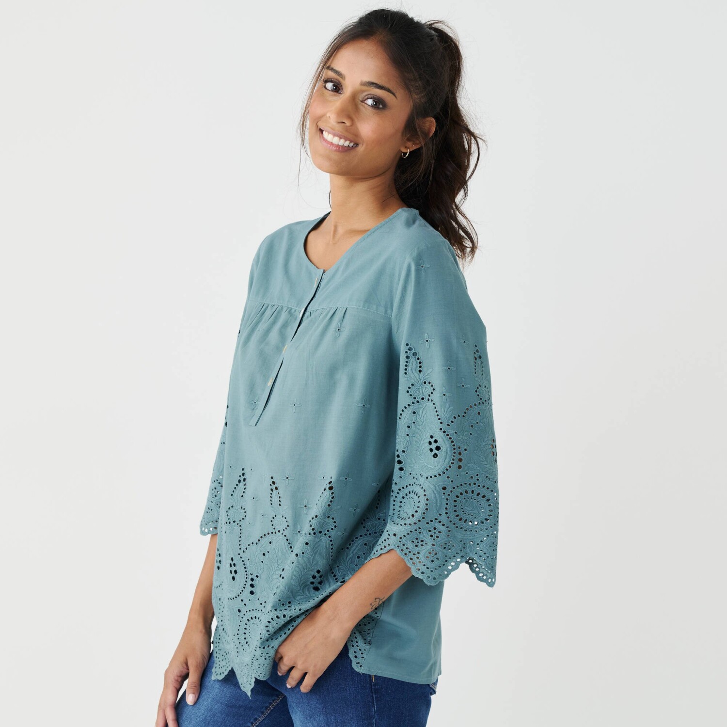 Halenka s výšivkou a ozdobným výstřihem se střapci