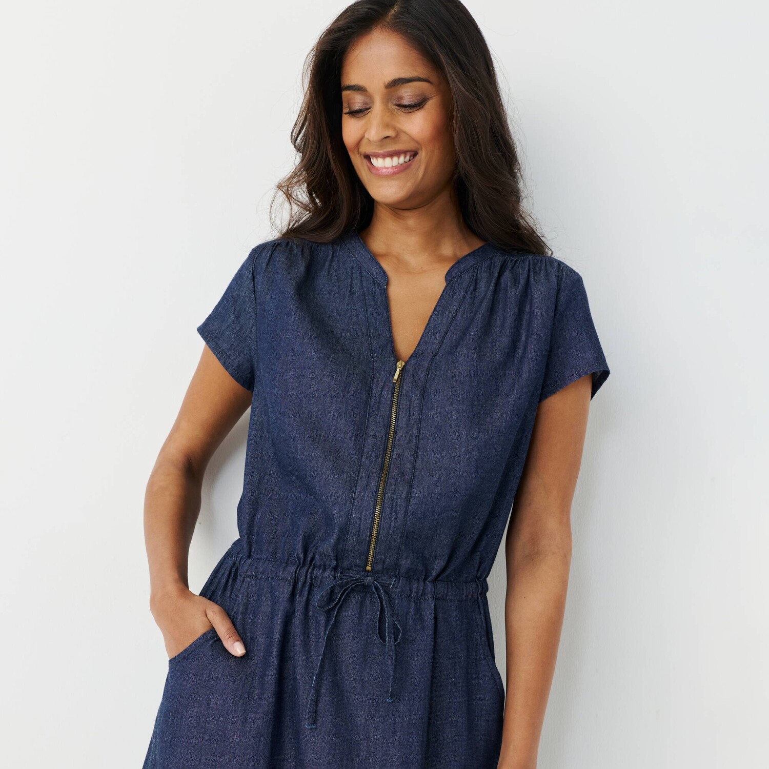 Midi džínové šaty s rozšířenými rukávy