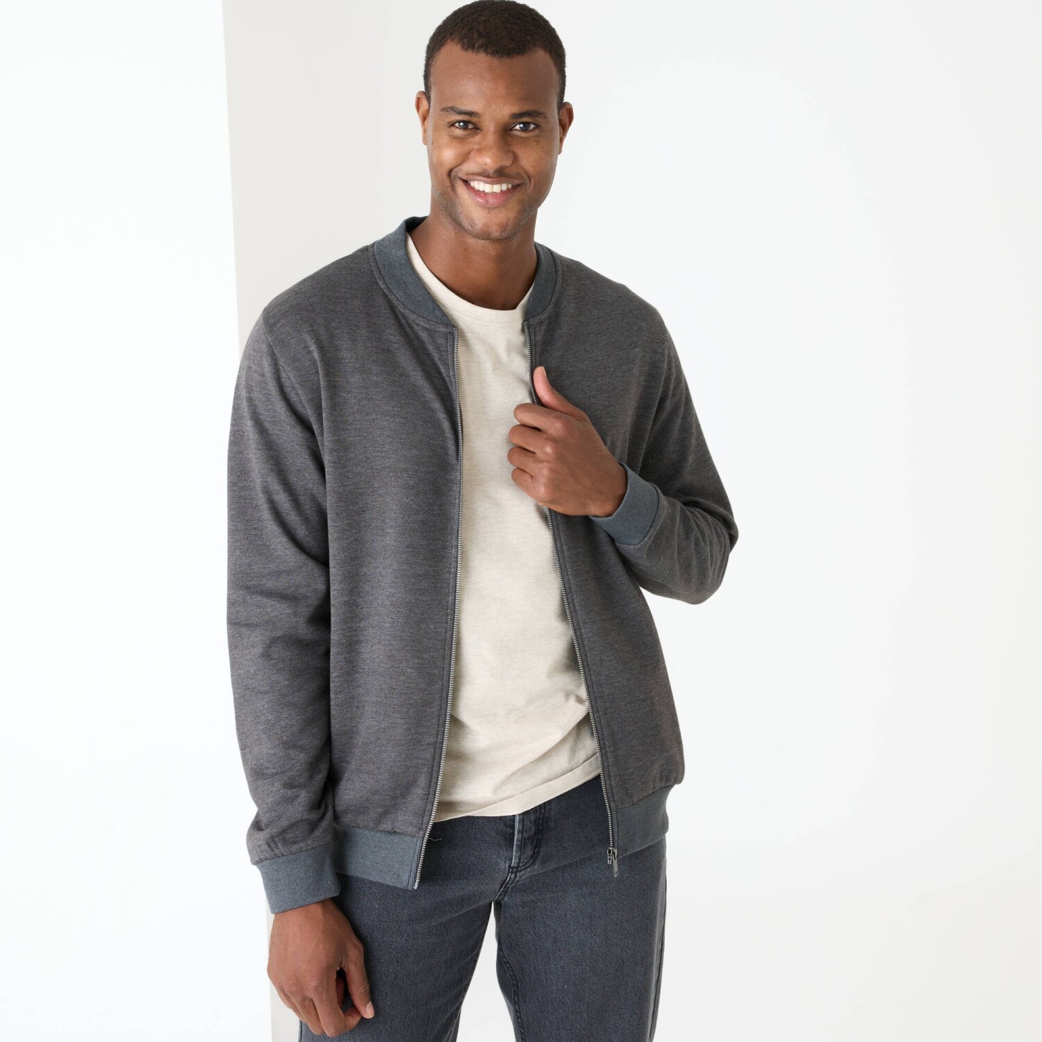 Mikina s kulatým výstřihem, na zip