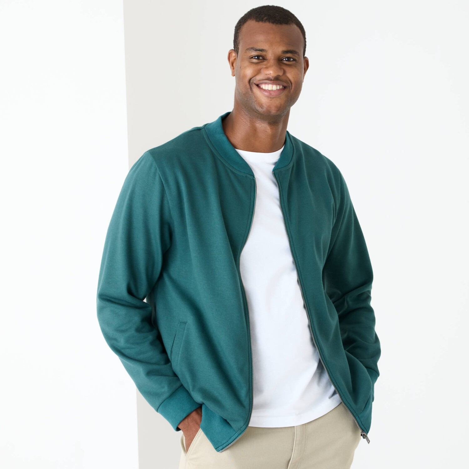 Moltonová bunda s bomber výstřihem a zipem snadno doplní každý Váš outfit. Komfortní molton česaný na vnitřní straně. Vpředu na zip. Bomber výstřih. Dlouhé rukávy. Rovný spodní lem. Žebrované zakončení. Certifikát Made In Green od OEKO-TEX®. Kromě ověření několika stovek chemických látek (STANDARD 100), které přispívají k vysoké bezpečnosti, toto označení zaručuje ohleduplné výrobní principy a kontrolované společenské postupy (certifikát STeP). Lze prát v pračce.
