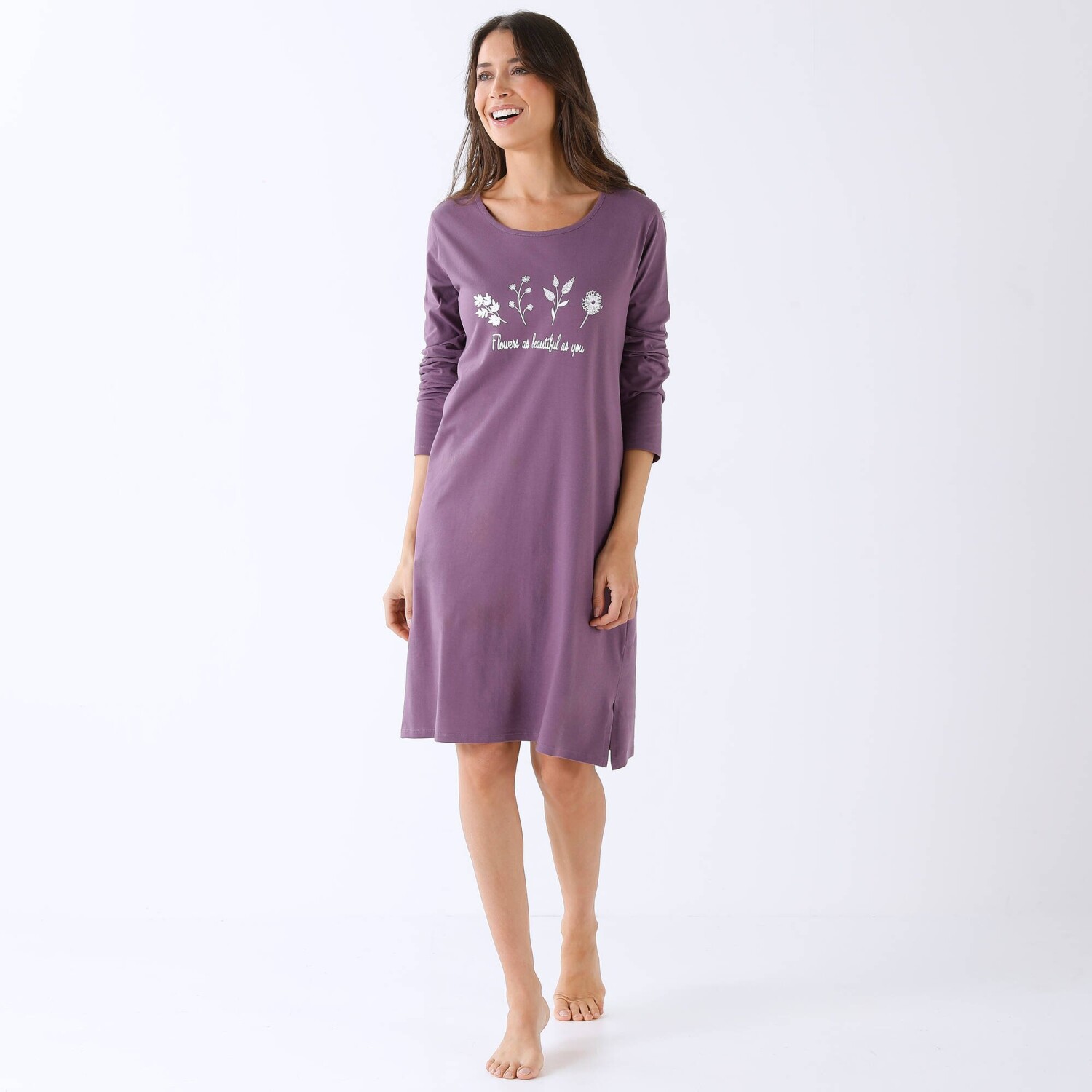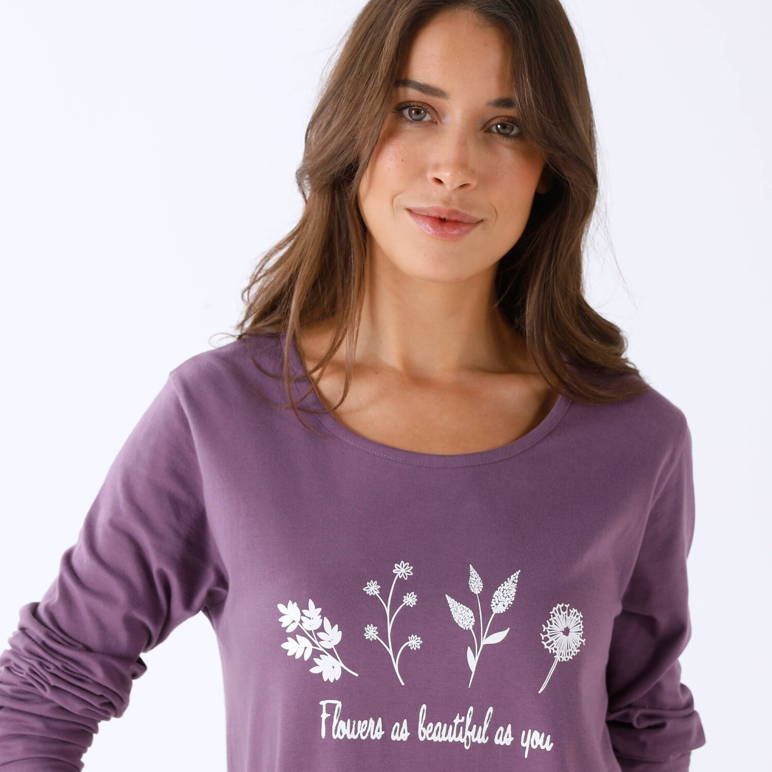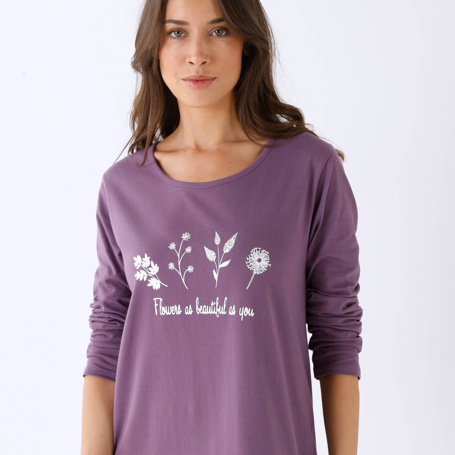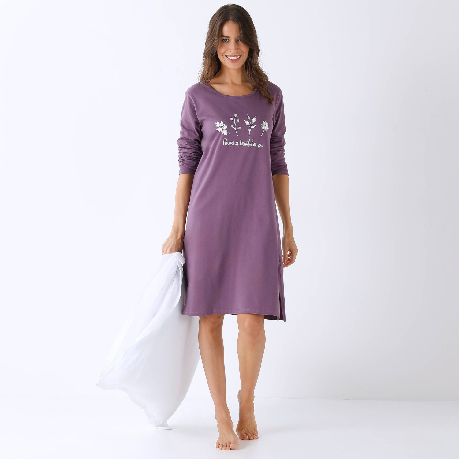 Každá žena miluje květiny a tak Vám je přinášíme jako vzor na noční košili s krátkými rukávy. Kulatý výstřih. Dlouhé rukávy. Vpředu středový potisk květin. Rovný spodní lem s postranními rozparky. Standard 100 podle Oeko-Tex (n° CQ 1216/ 3 IFTH). Tato známka označuje textilní výrobky, které byly podrobeny laboratorním testům na široké spektrum škodlivých látek a výrobek je bezpečný nad rámec platných norem. Lze prát v pračce.