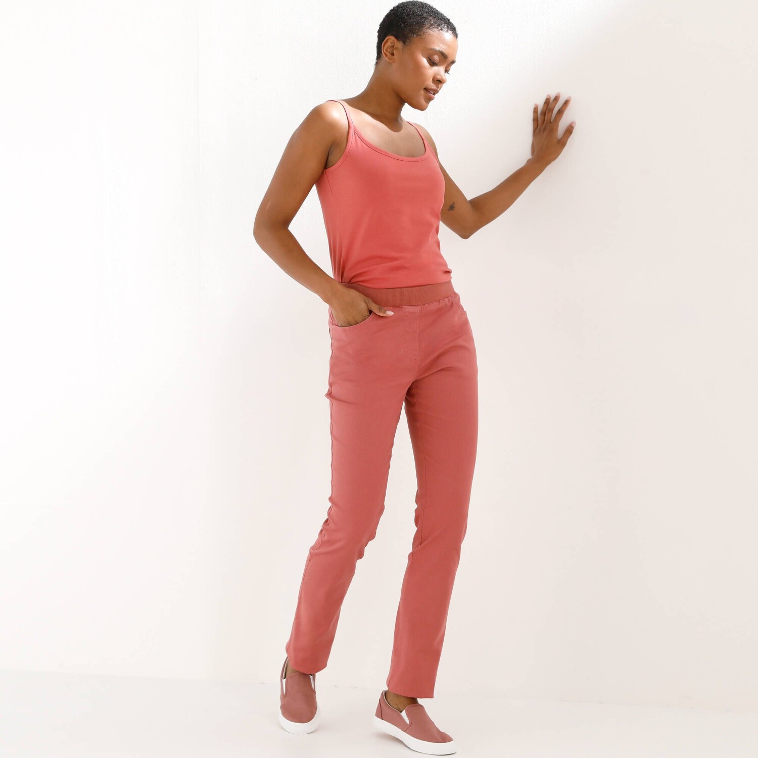 Celopružný pas: to je praktický detail pružných kalhot, které si snadno zamilujete. Rovné kalhoty s pružným pasem. Vhodné pro různé příležitosti, vždy pohodlné. Pružný úpletový pas. Z elastické tkaniny. Rovný střih sluší každé postavě. Běžná výška pasu. Falešný poklopec. 2 kapsy. 2 našité kapsy + zvýšený zadní díl. Lze prát v pračce.