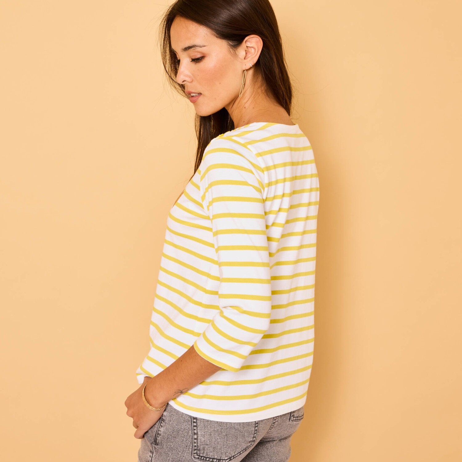 Jednobarevné tričko s výstřihem na knoflíčky a dlouhými rukávy
