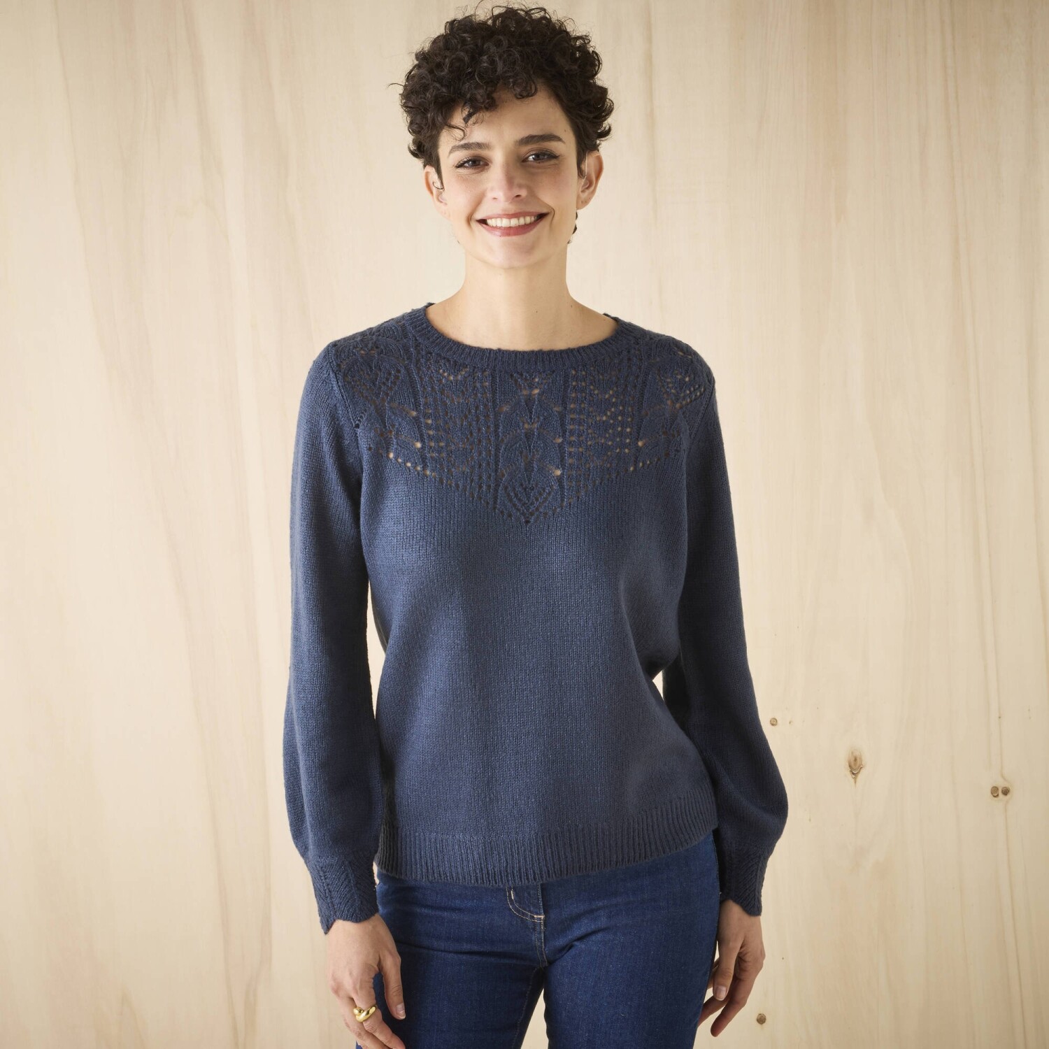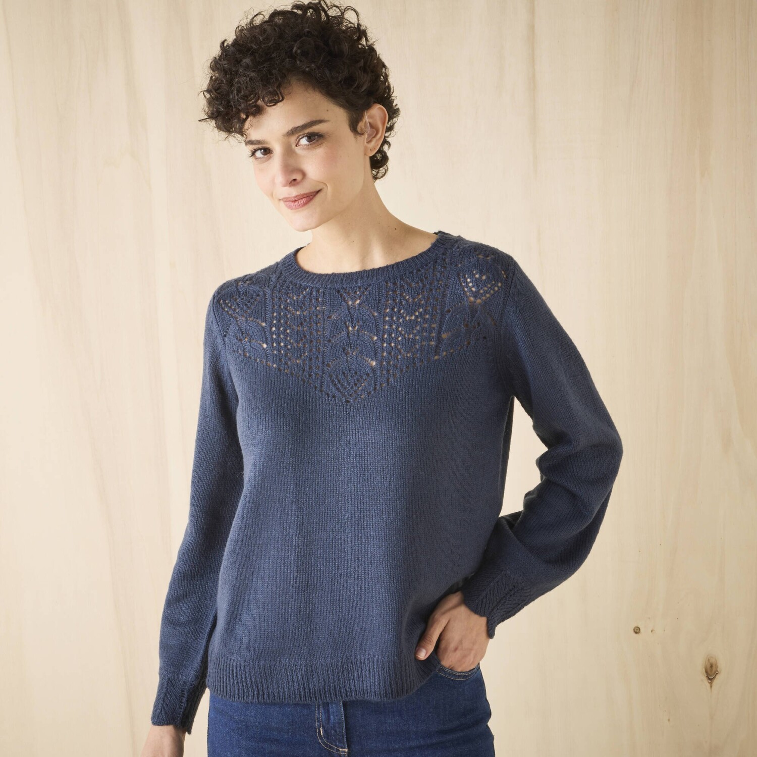 Pulovr s ažurovým vzorem je tak ženský a navíc jemný na dotek. Rubový žerzej a ažurový vzor. Kulatý výstřih s originálním a ažurovým vzorem. Dlouhé halenkové rukávy. Manžety s vlnkovaným zakončením. Rovný dolní lem. Lze prát v pračce.