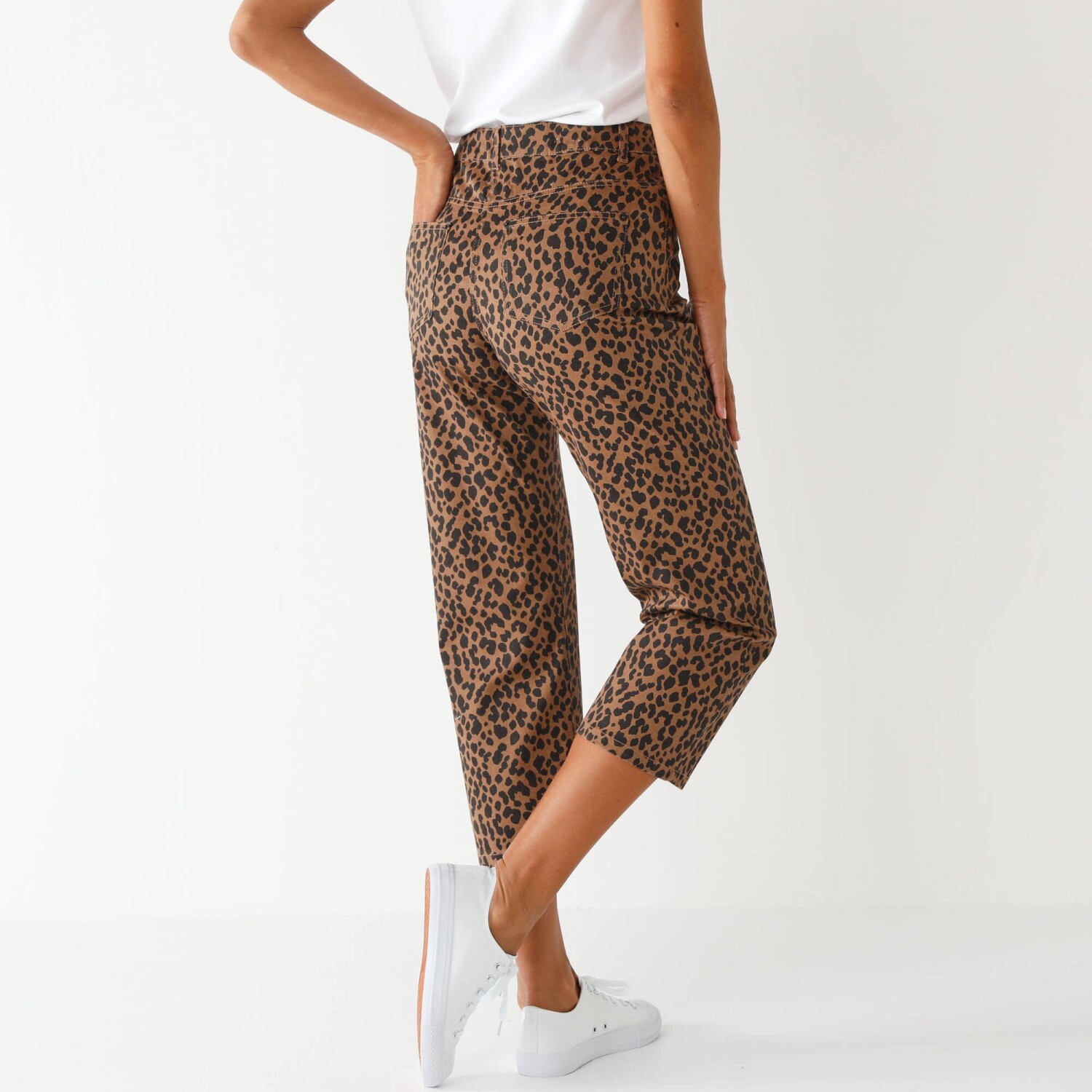 Pohodlné denimové 3/4 kalhoty s pružným pasem