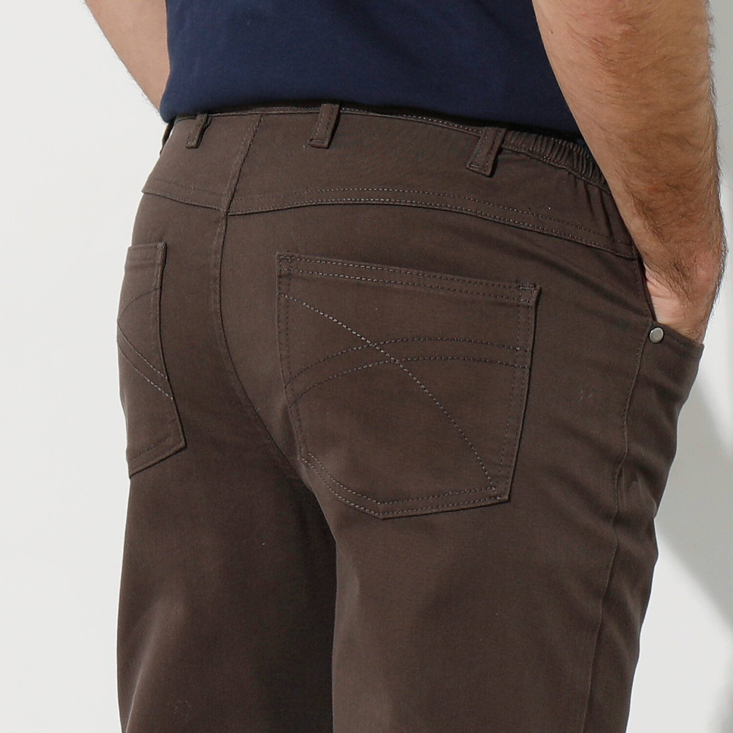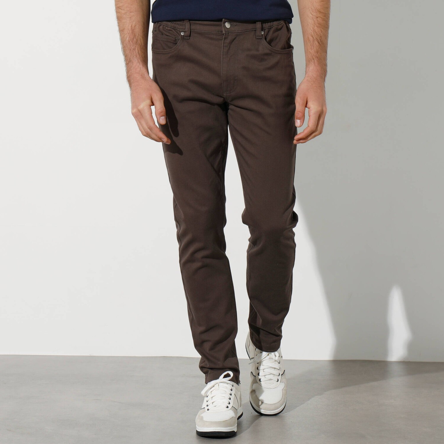 Manšestrové kalhoty s 5 kapsami a pružným pasem na bocích