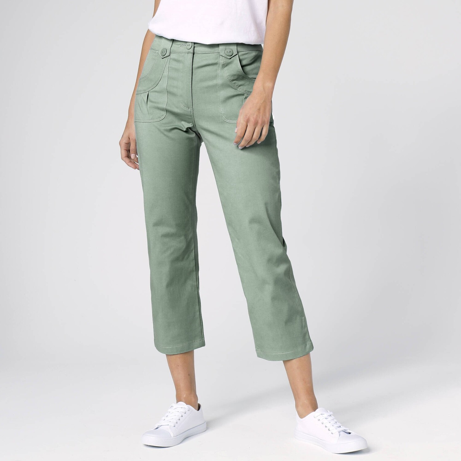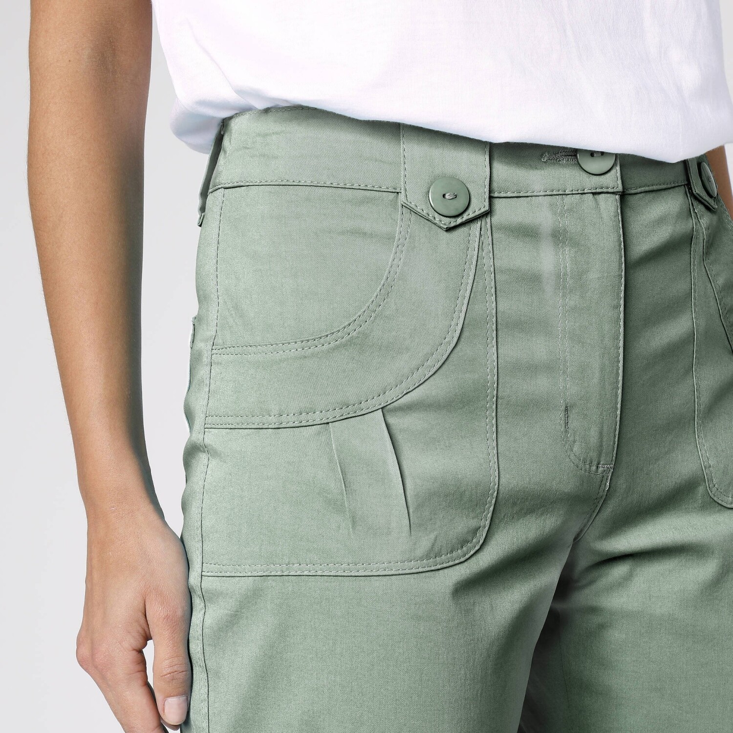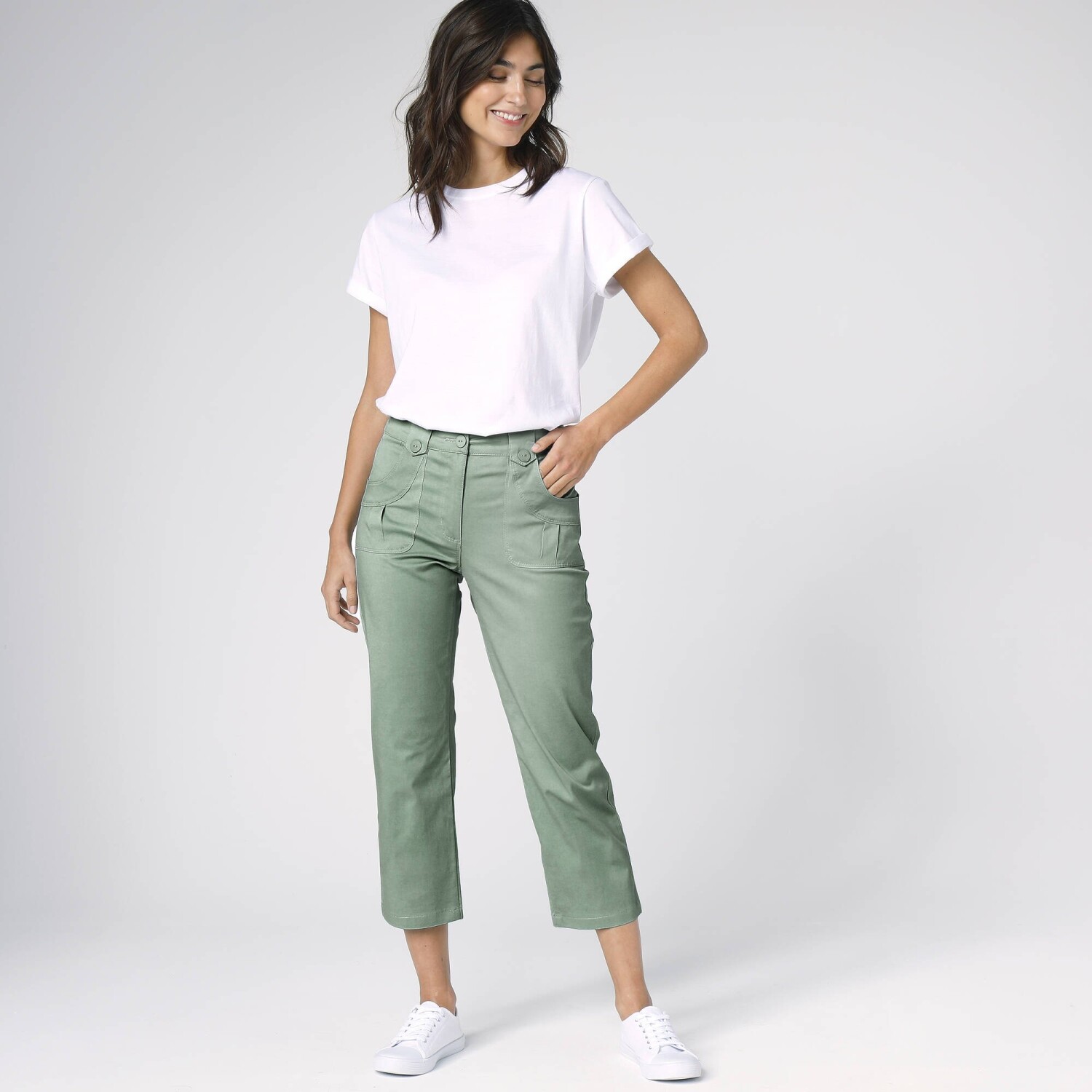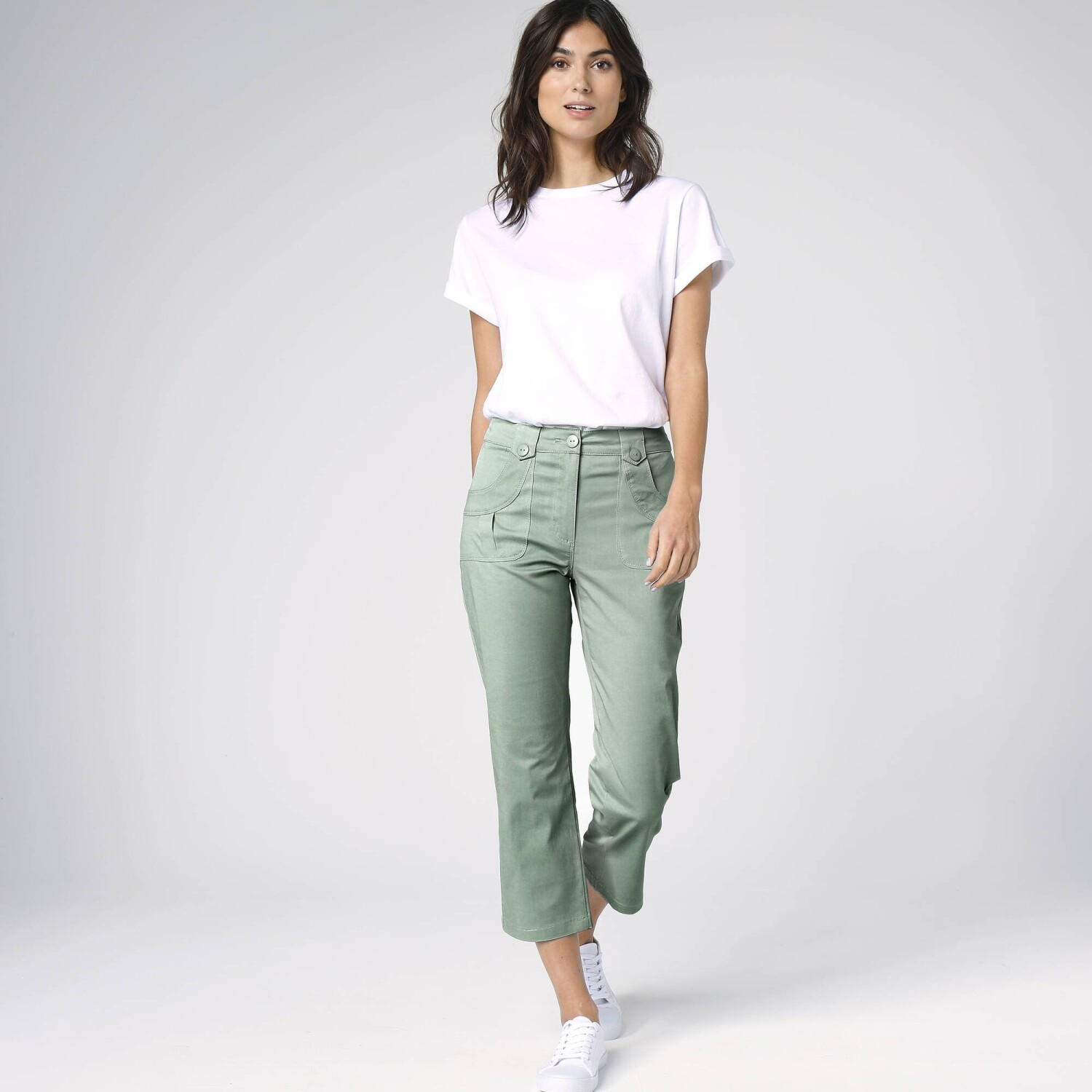Široké 7/8 kalhoty s kapsami, ze směsi bavlny a lnu