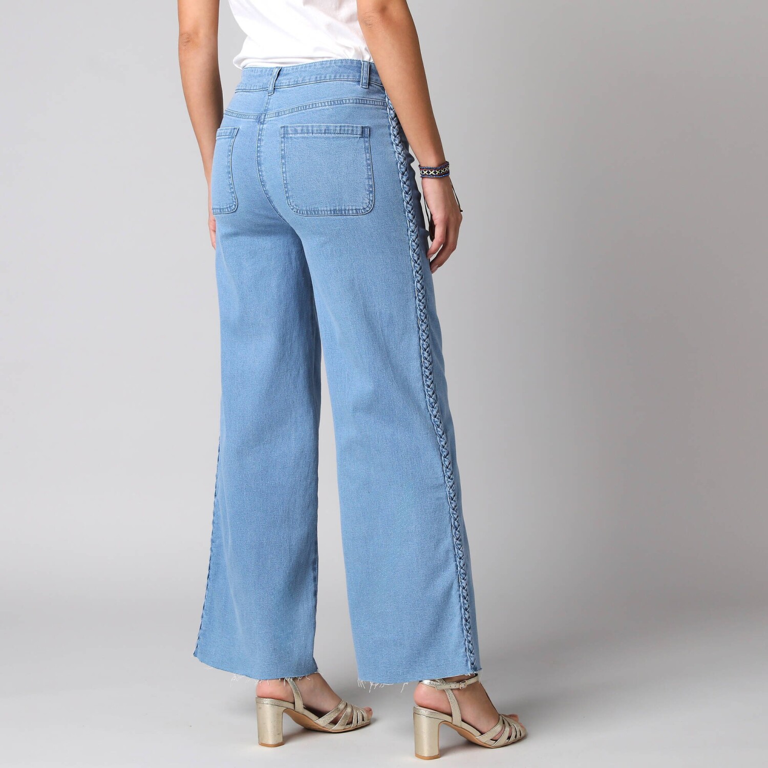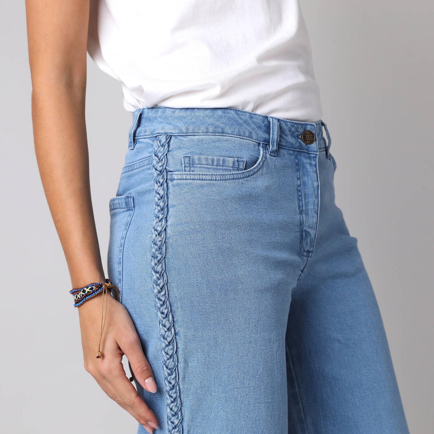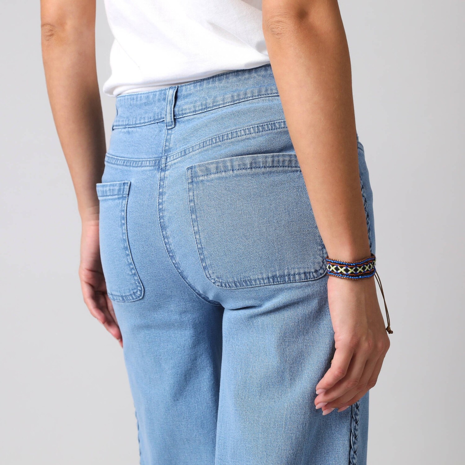 Rovné kalhoty s kapsami a nohavicemi na ohrnutí, denimové