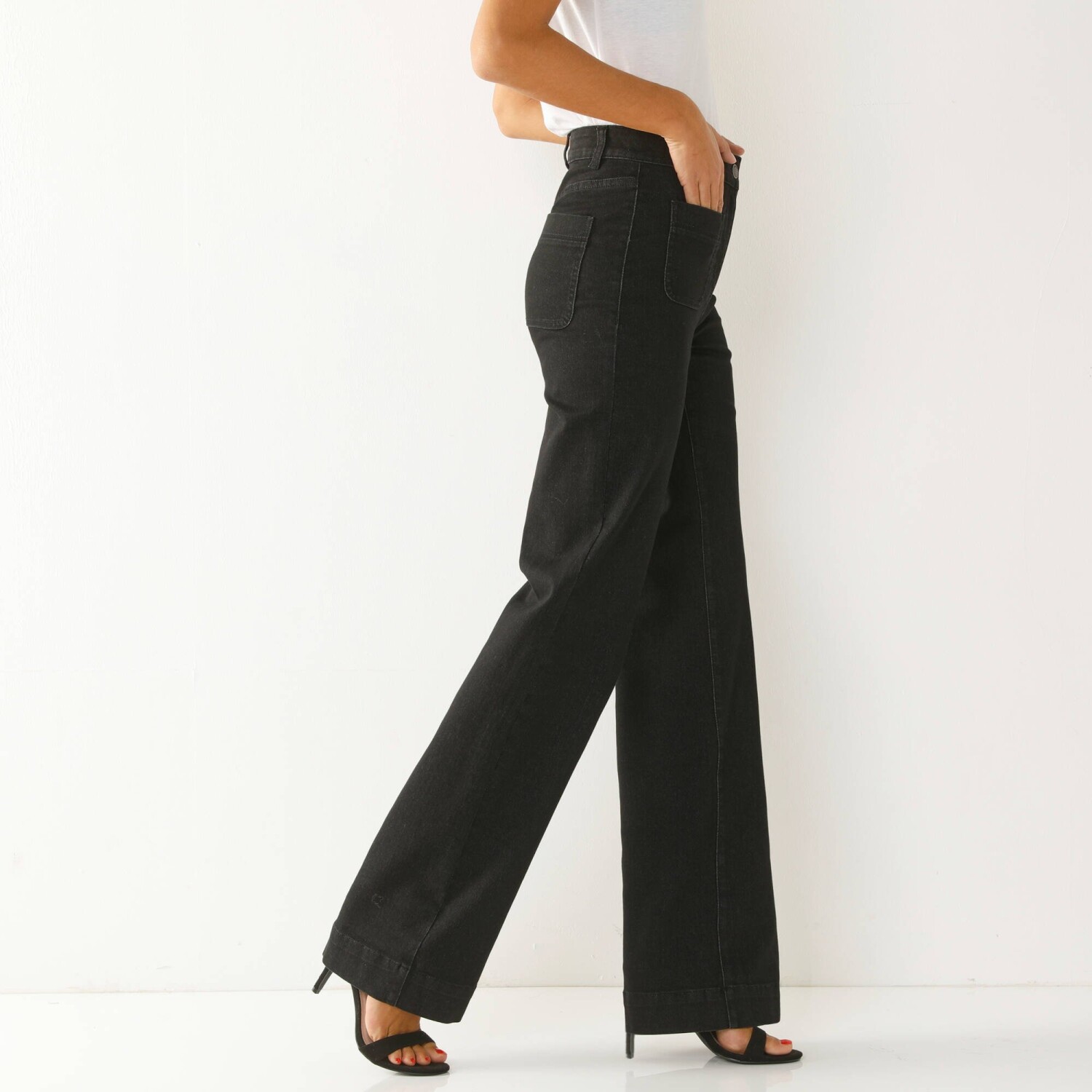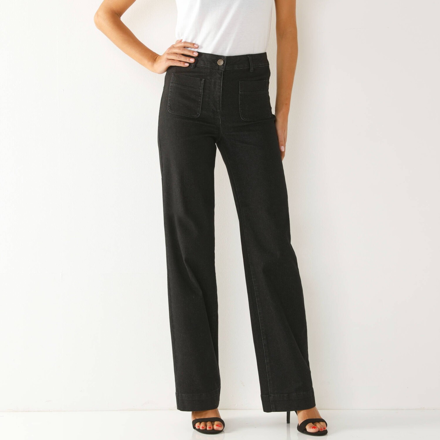 Rovný střih, lichotivá šířka, vysoký pas, eco-friendly denim - tyto džíny Vám poskytnou maximální volnost pohybu. Speciálně navržené pro ženy s výškou více než 165 cm. Široký střih. Vysoký pas. Tvarovaný pas s poutky. Zapínání na zip + knoflík. 2 našité kapsy vpředu. Vzadu 2 našité kapsy a zvýšený zadní díl. Kontrastní prošití. Certifikát Made In Green od OEKO-TEX®. Kromě ověření několika stovek chemických látek, které přispívají k vysoké bezpečnosti, toto označení zaručuje ohleduplné výrobní principy a kontrolované společenské postupy. Společnost Blancheporte zvolila recyklovaný polyester, čímž přispívá k boji proti plýtvání a podporuje odpovědnější spotřebu, která respektuje životní prostředí. Lze prát v pračce.