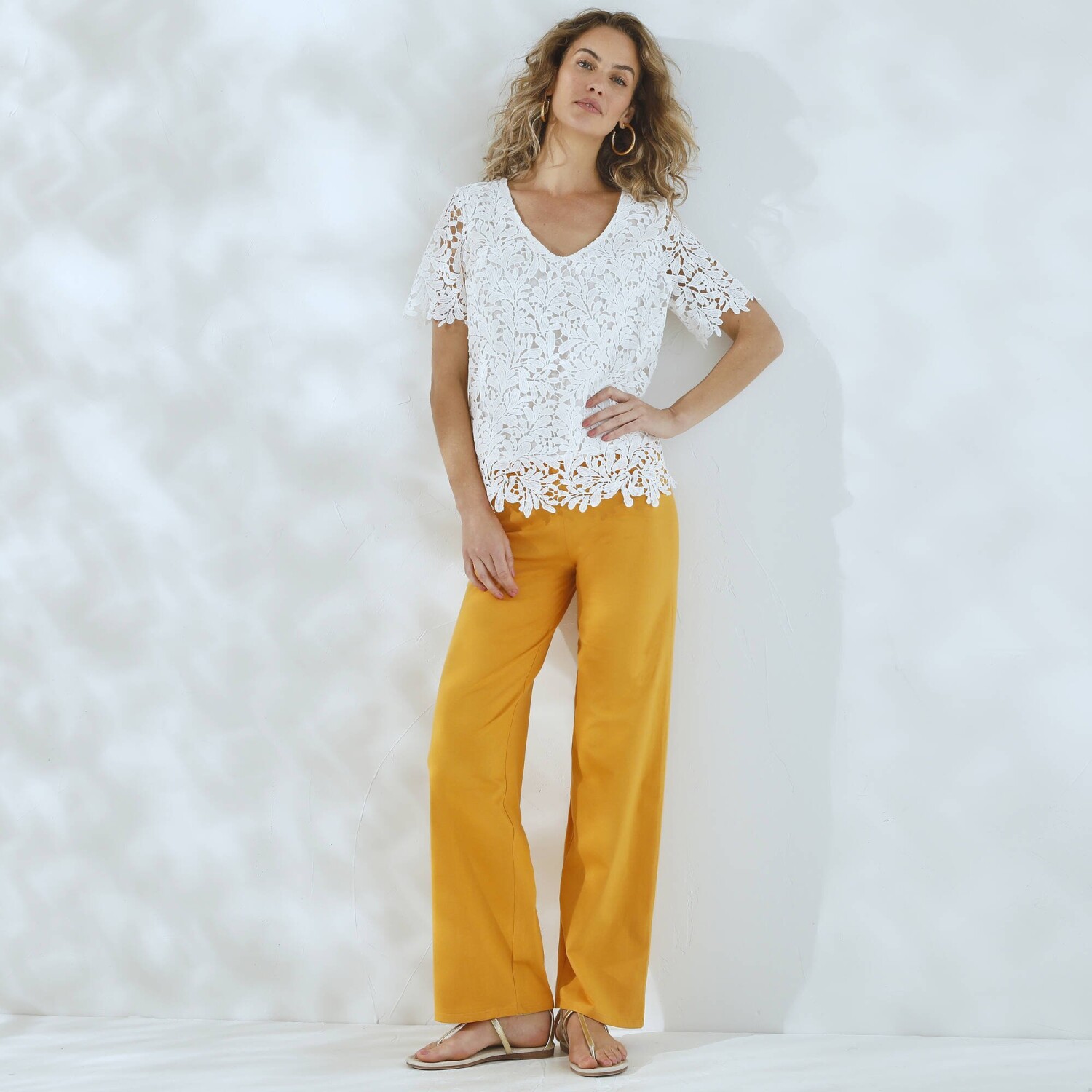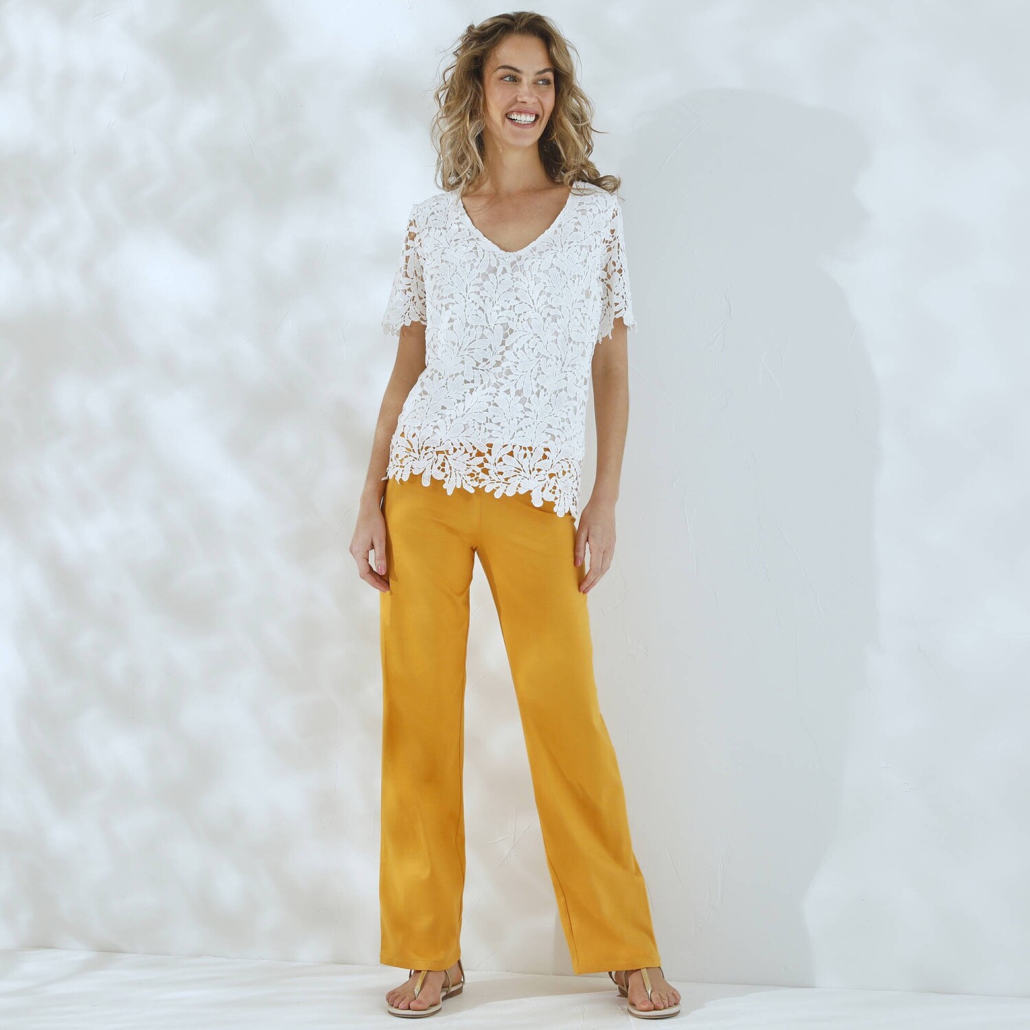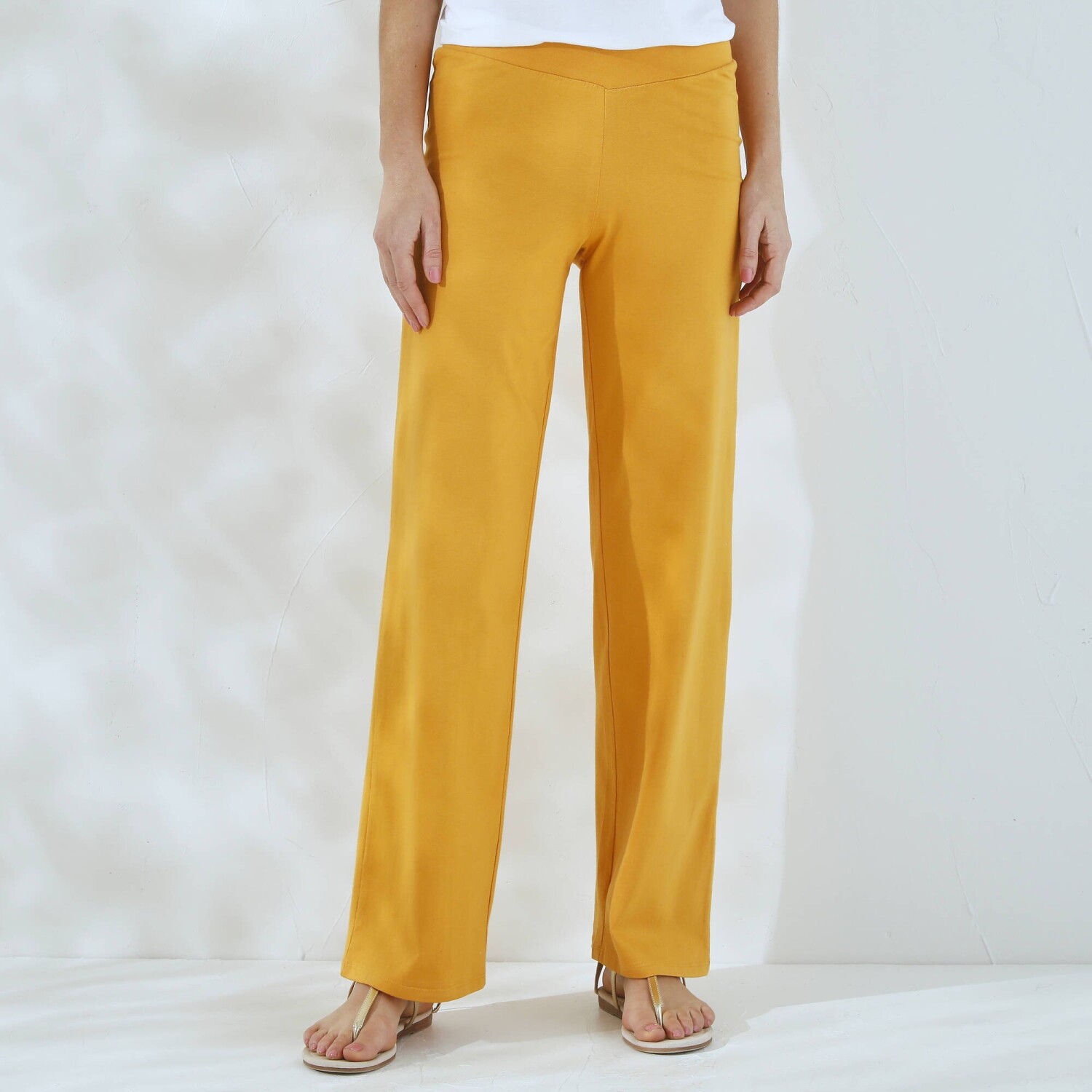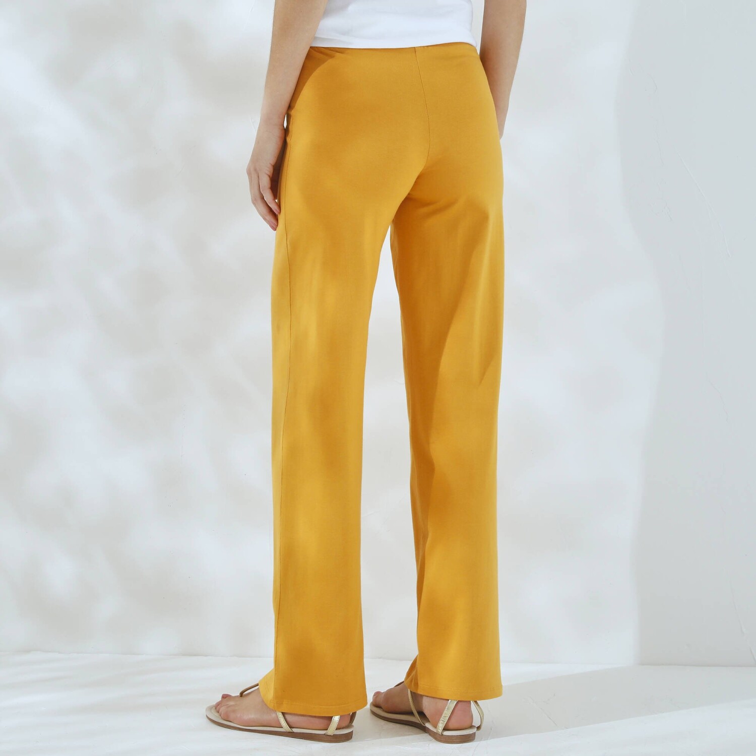 Široké žerzejové kalhoty jsou skvělé pro různé příležitosti. Záleží jen na Vaší fantazii! Elastický pas zaručuje absolutní pohodlí. Ze strečového komfortního žerzeje. Široké konce nohavic. Standard 100 podle Oeko-Tex (n° CQ 1216 / 3 IFTH). Tato známka označuje textilní výrobky, které byly podrobeny laboratorním testům na široké spektrum škodlivých látek a výrobek je bezpečný nad rámec platných norem. Lze prát v pračce.
