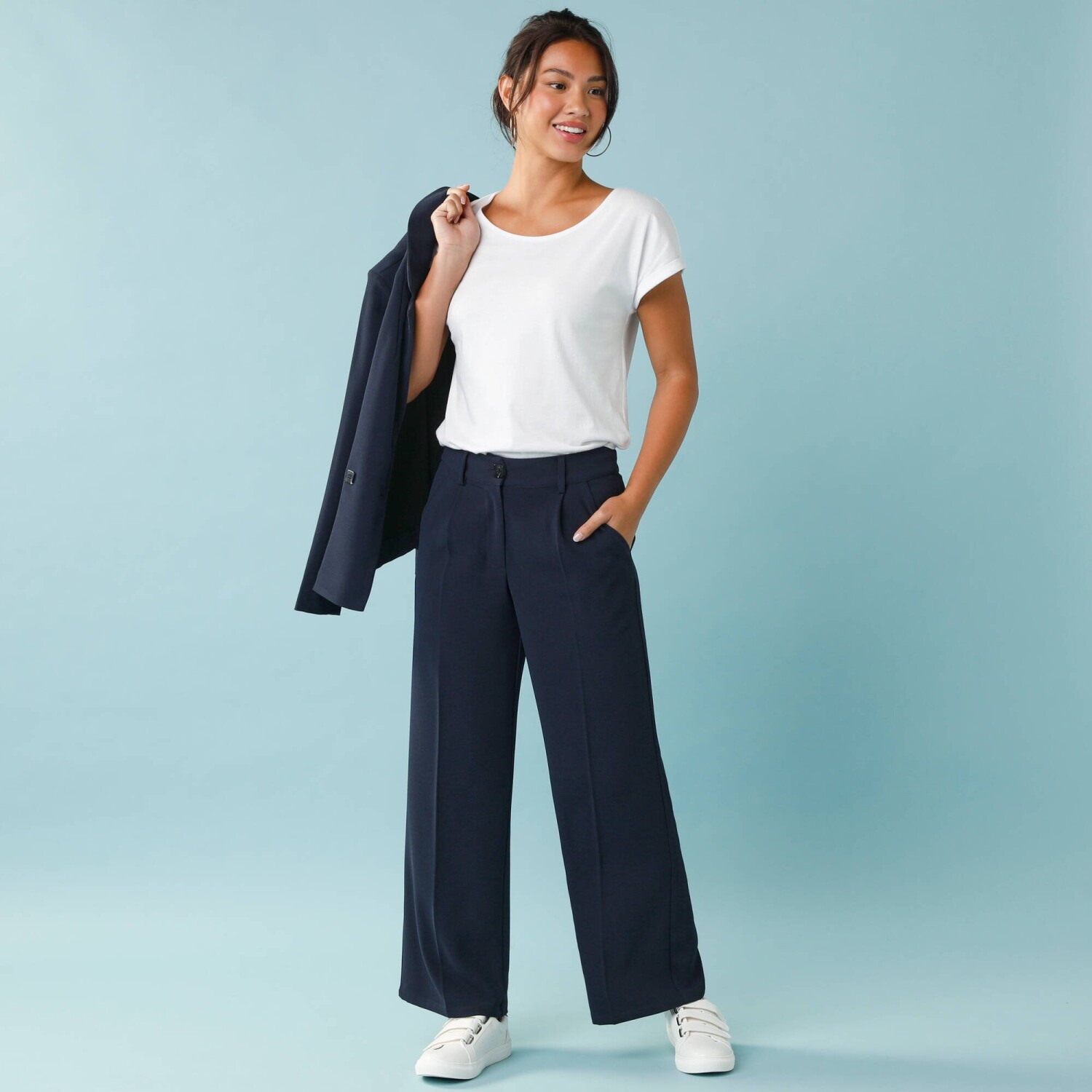 Široké kalhoty se sklady vpředu