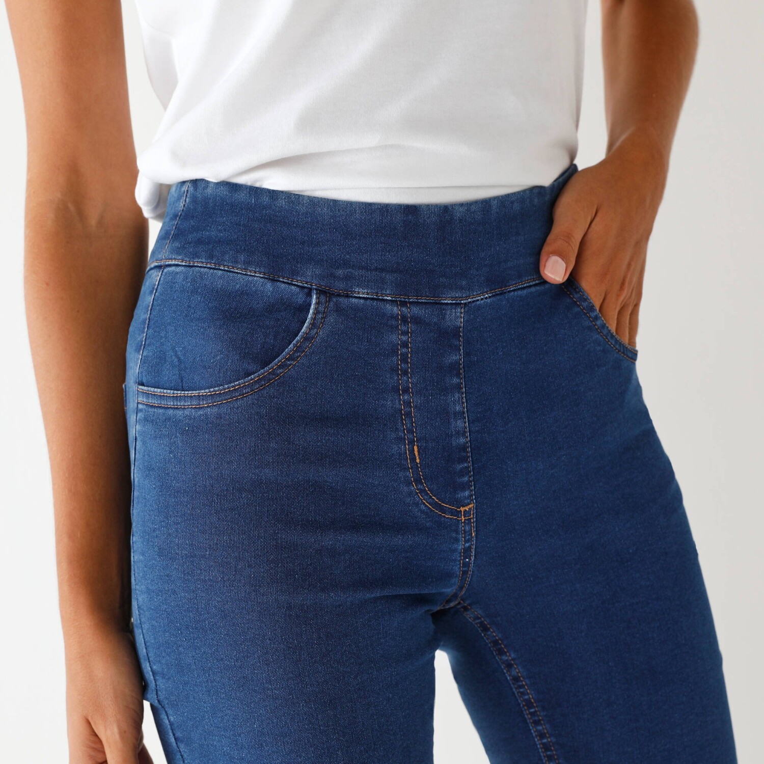 Pohodlné džegíny s pružným pasem, pro vyšší postavu