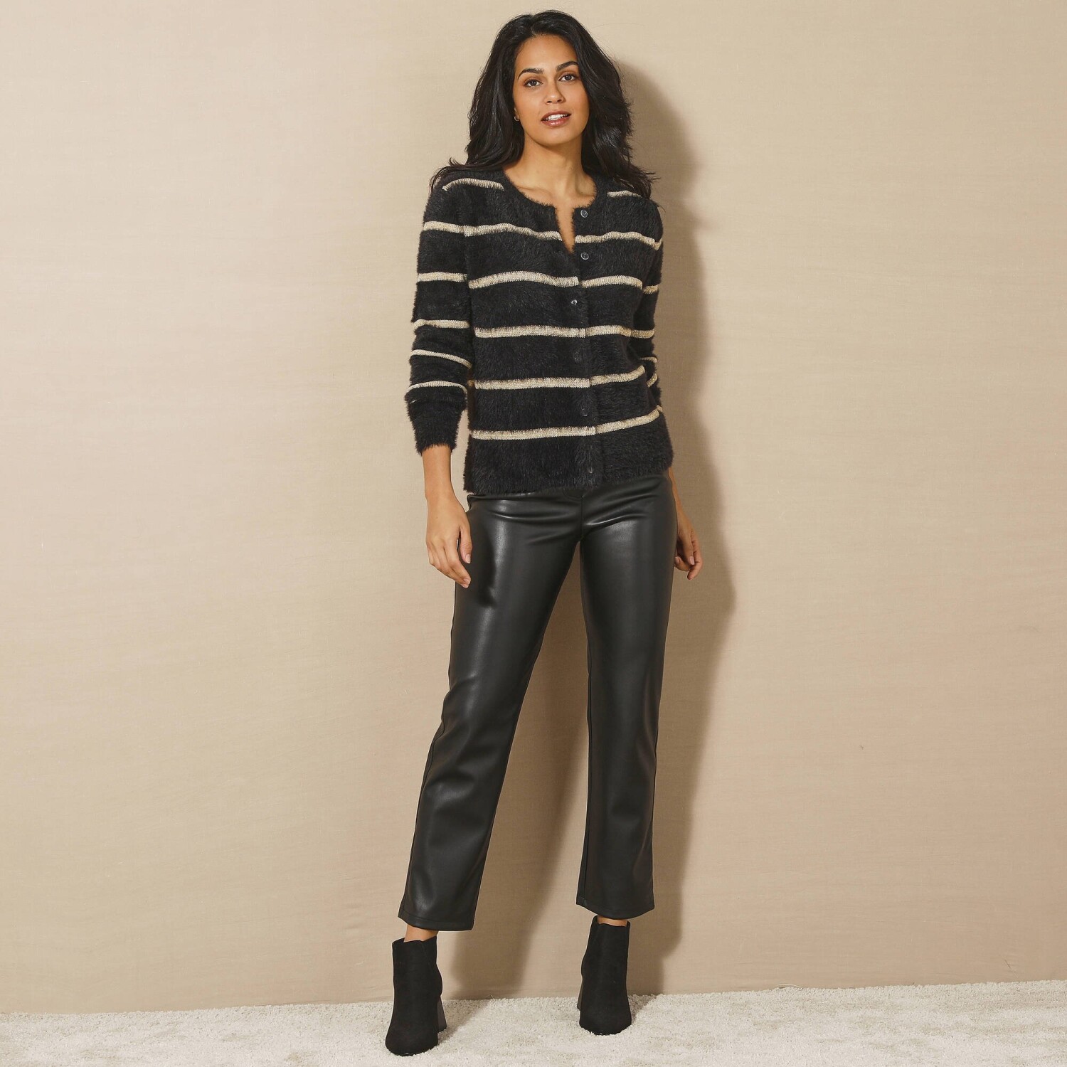 Proužkovaný propínací svetr z úpletu s vlasem