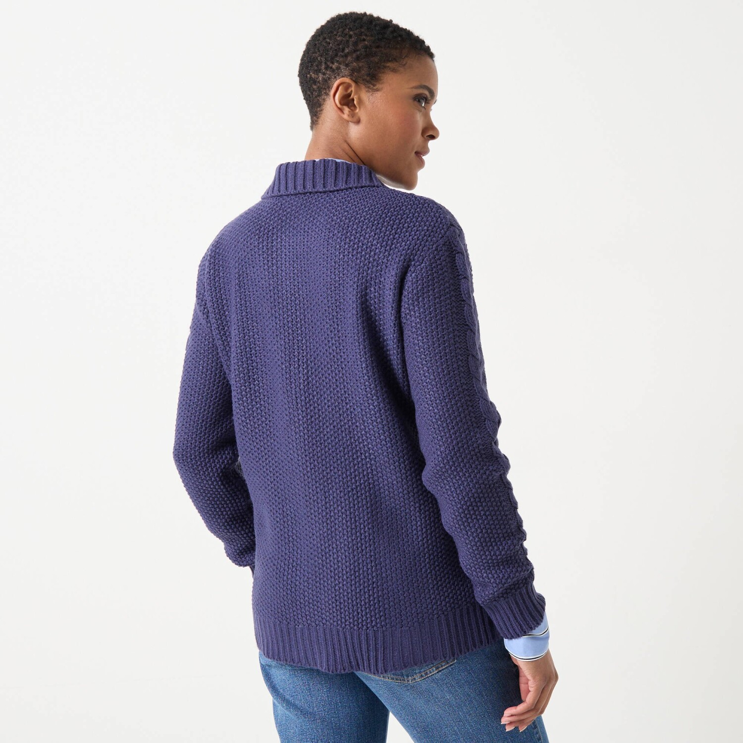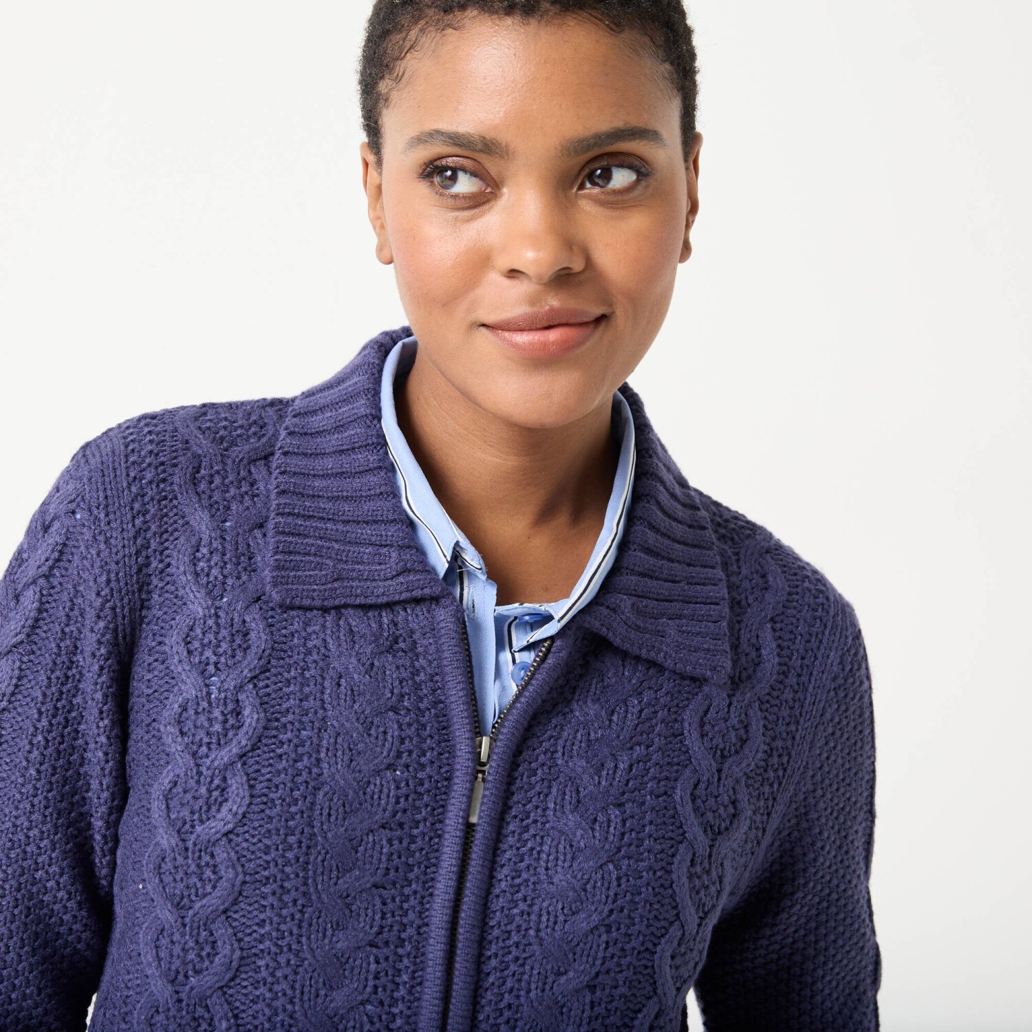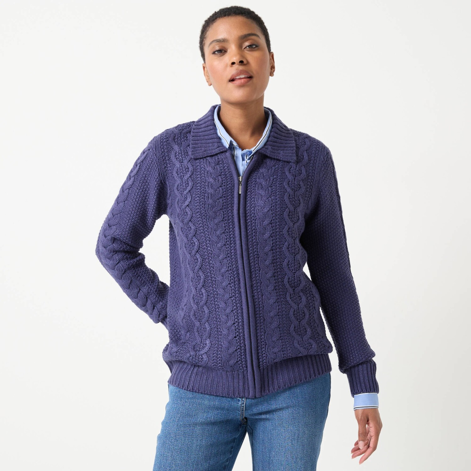 Toužíte po absolutním pohodlí? Pak sáhněte po svetru na zip. Jemný na dotek. Originální pletené vzory. Polo límeček se žebrováním 2x2. Vpředu na zip. Dlouhé, mírně zúžené rukávy. Rovný dolní lem. Lze prát v pračce.