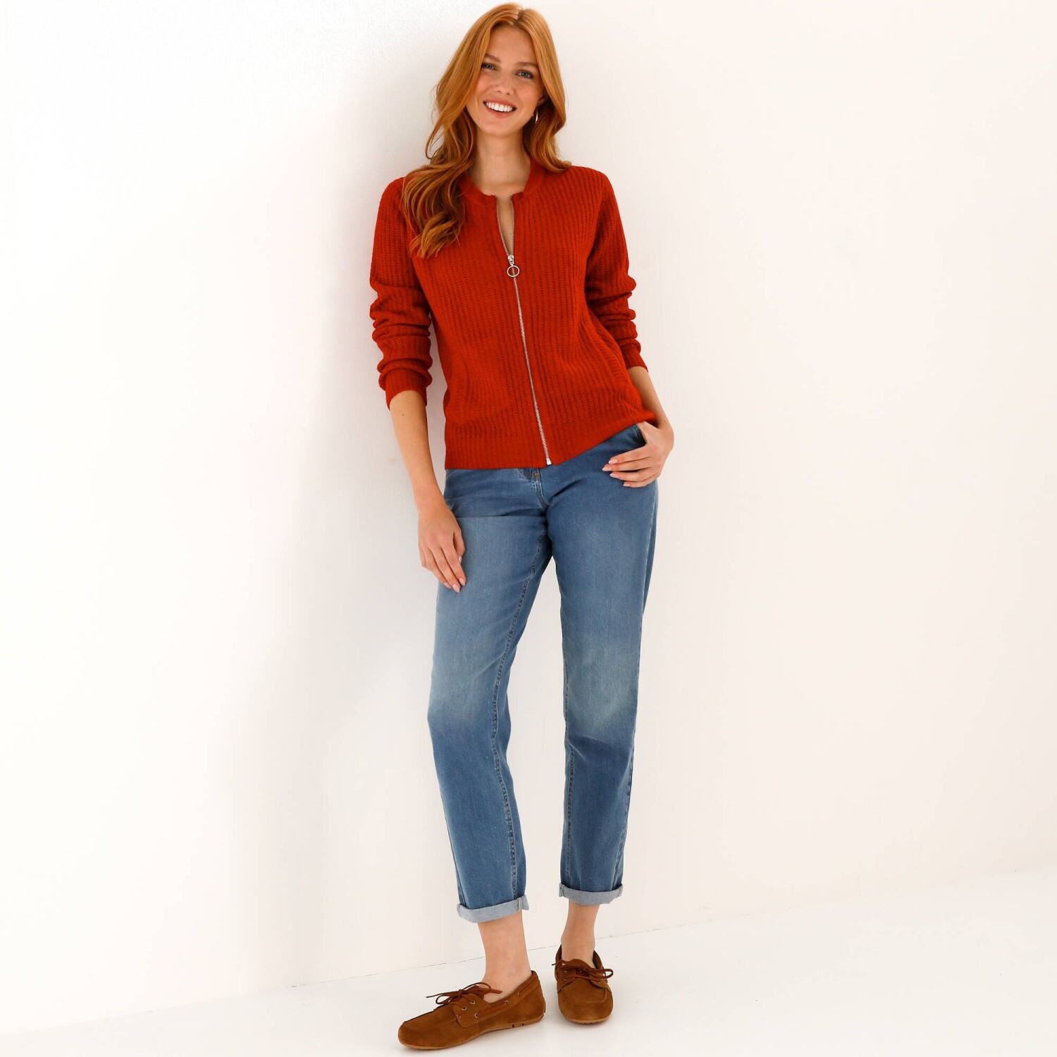 Svetr na zip s hladkým vzorem Vás zahrne svou jemností. Hladký vzor mohérový na dotek. Kulatý výstřih. Zipové zapínání. Dlouhé rukávy. Rovný spodní lem. Lze prát v pračce.