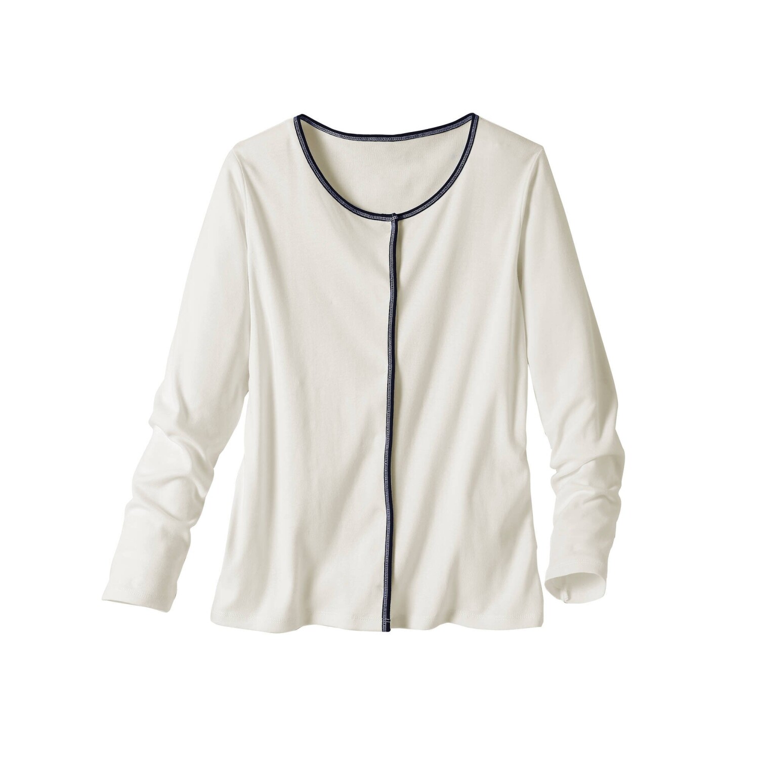 Elegantní a praktický, dvoubarevný svetr bez zapínání rafinovaně doplní Váš letní šatník. Bez zapínání. Kulatý výstřih. Dlouhé rukávy. Kontrastní lem výstřihu a předního dílu. Rovný spodní lem. Standard 100 podle Oeko-Tex (n° CQ 1216 / 3 IFTH). Tato známka označuje textilní výrobky, které byly podrobeny laboratorním testům na široké spektrum škodlivých látek a výrobek je bezpečný nad rámec platných norem. Lze prát v pračce.