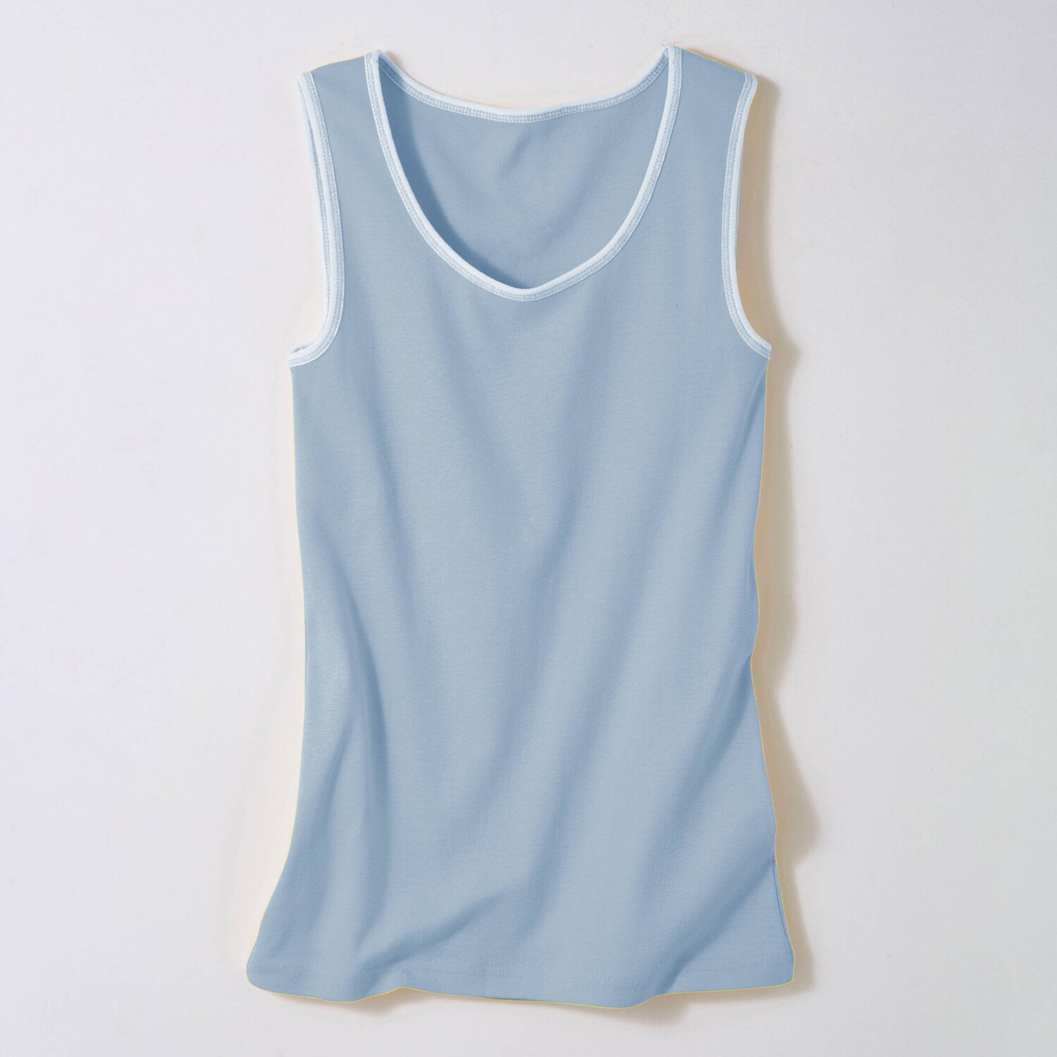 Nepostradatelným kouskem letního šatníku je dvoubarevný top z certifikované bavlny. Kulatý výstřih. Bez rukávů. Kontrastní lem výstřihu a průramků. Rovný dolní lem. Standard 100 podle Oeko-Tex (n° CQ 1216 / 3 IFTH). Tato známka označuje textilní výrobky, které byly podrobeny laboratorním testům na široké spektrum škodlivých látek a výrobek je bezpečný nad rámec platných norem. Lze prát v pračce.
