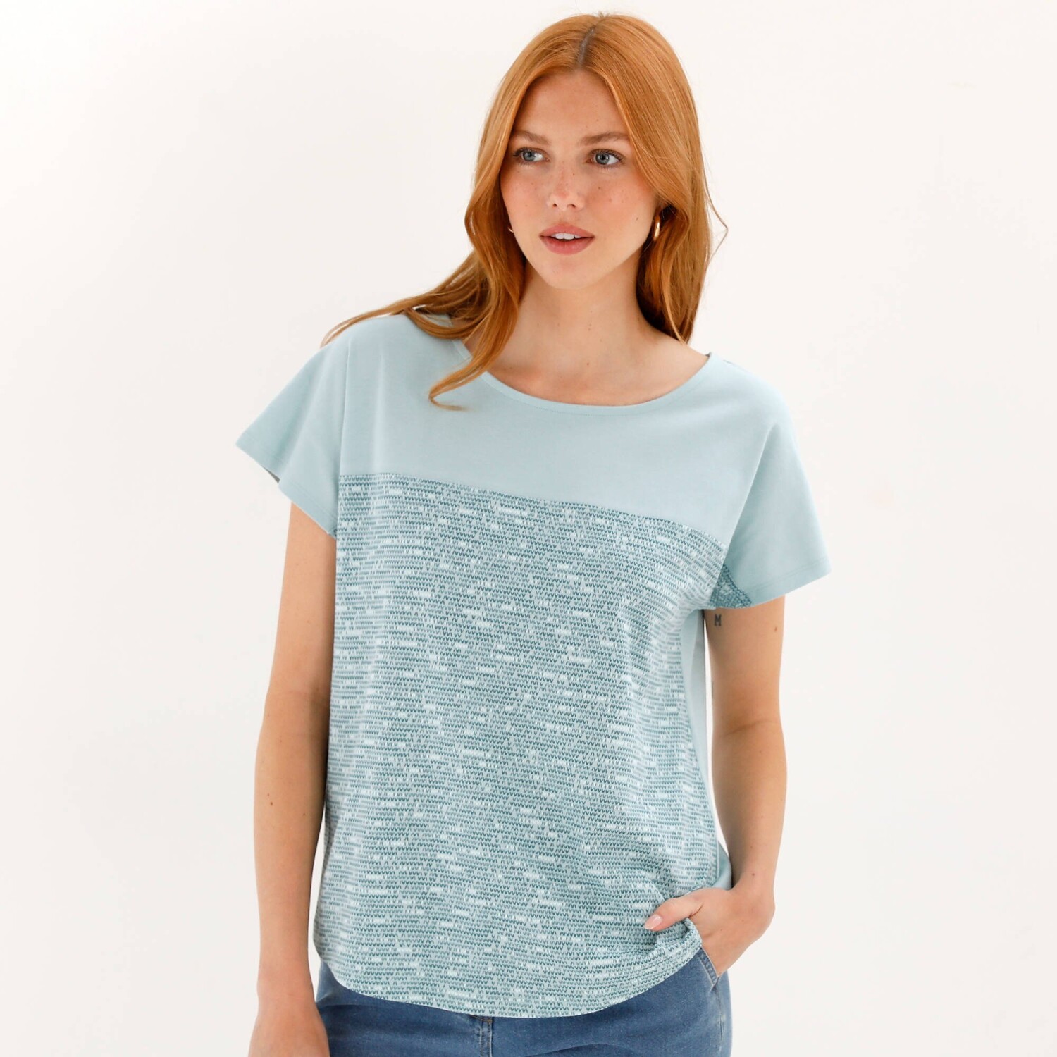 Originální vzdušné tričko s potiskem! Kulatý výstřih. Vpředu nahoře jednobarevná vsadka. Krátké spadlé rukávy. Jednobarevný zadní díl. Zakulacený dolní lem. Standard 100 podle Oeko-Tex (n° CQ 1216 /3 IFTH). Tato známka označuje textilní výrobky, které byly podrobeny laboratorním testům na široké spektrum škodlivých látek a výrobek je bezpečný nad rámec platných norem. Perte na 30 °C.