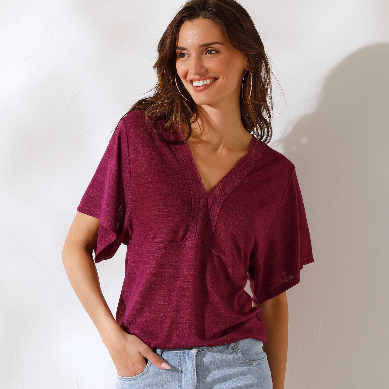 Tričko s kulatým výstřihem, krátkými rukávy a madeirou