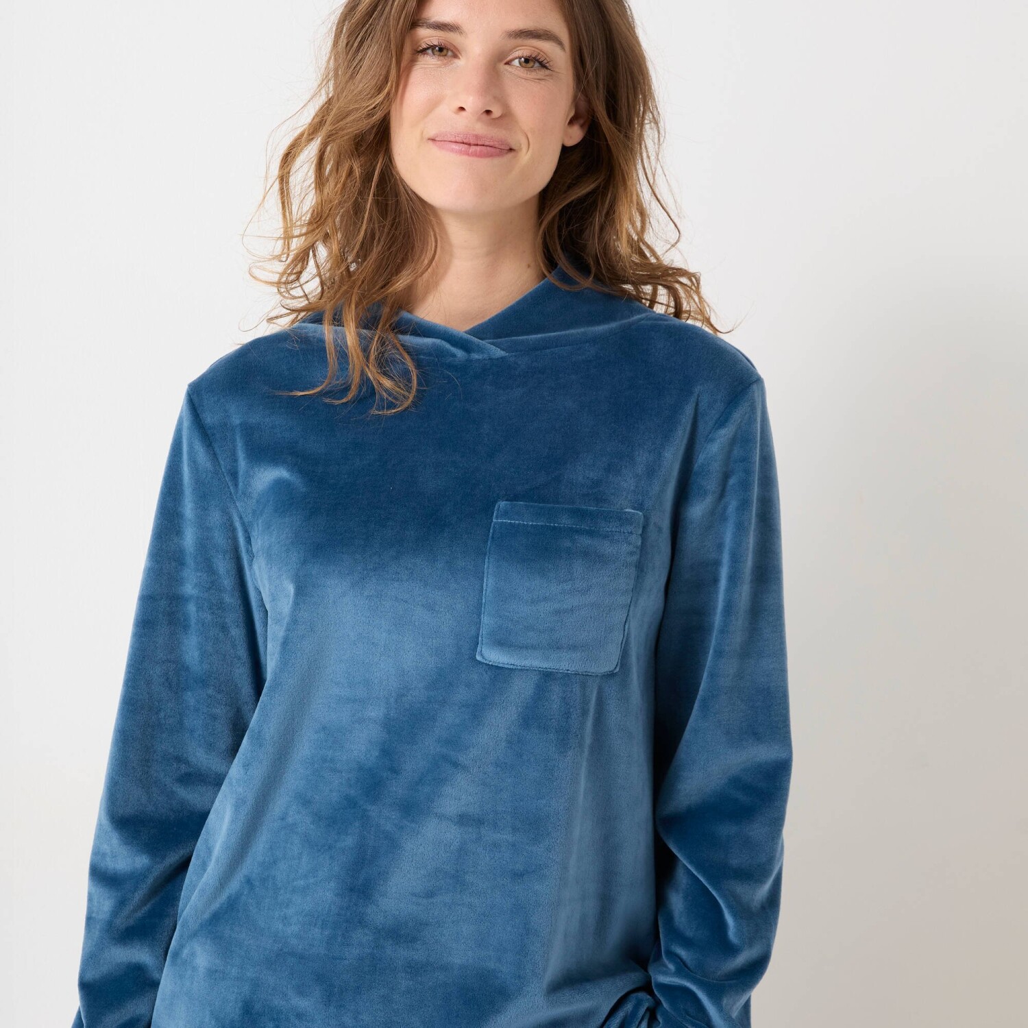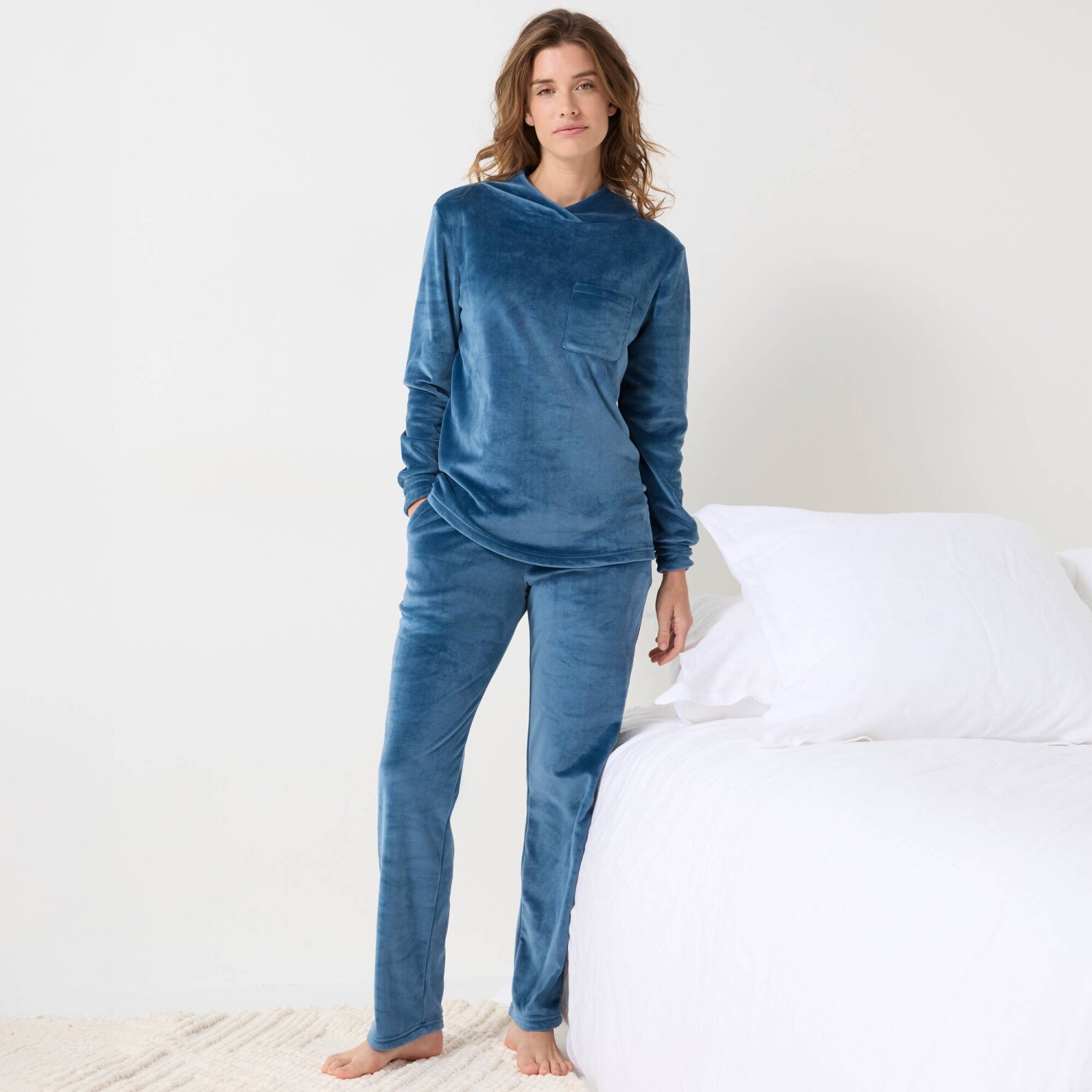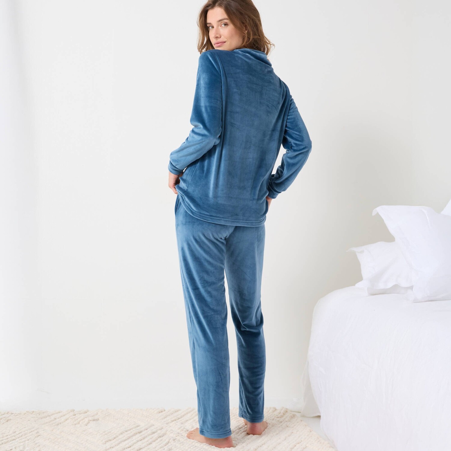 Velurové pyžamo s kalhotami, překřížením a dlouhými rukávy
